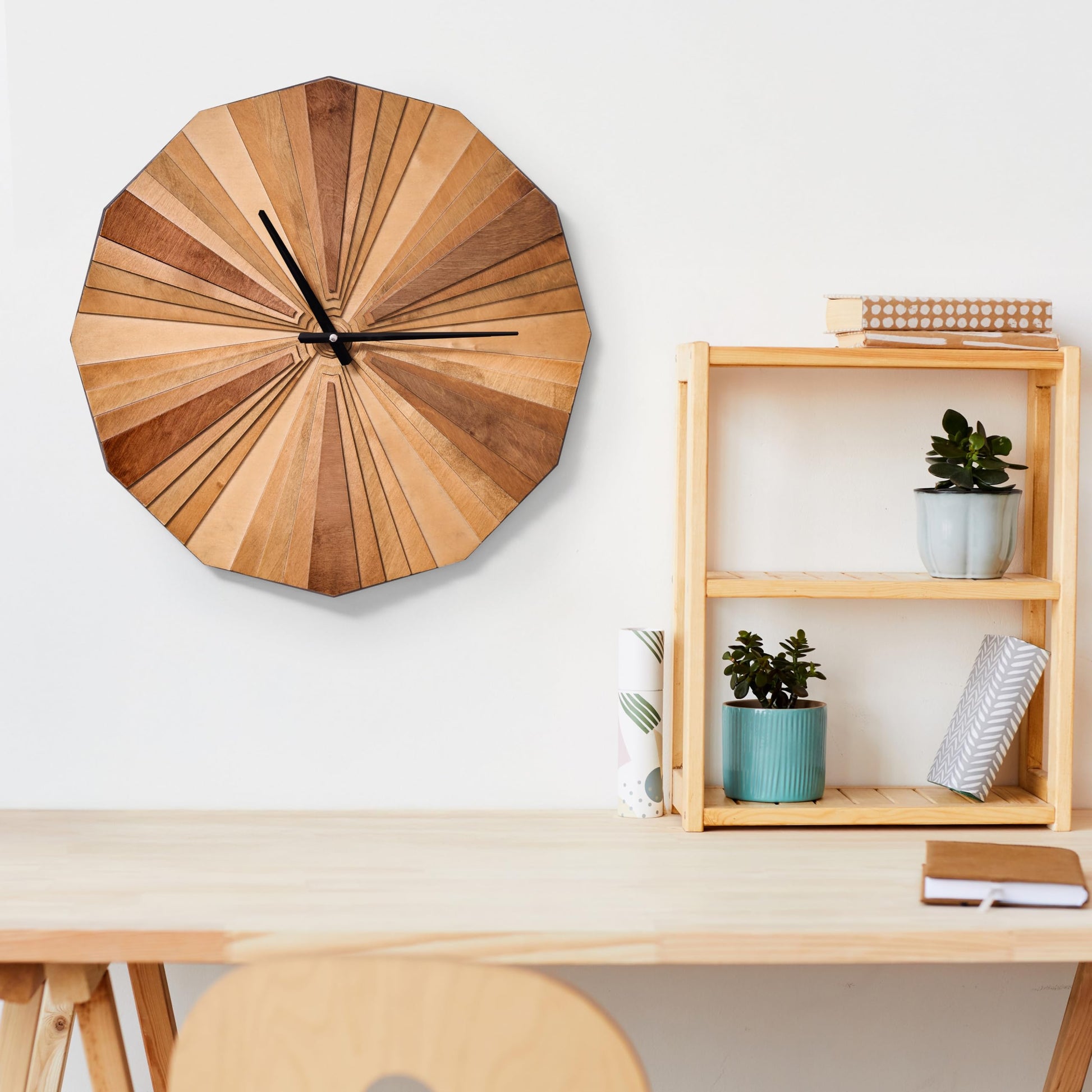 - Geometric Unique Design parametric wood wall clock , parametric wood stains forming a color palette