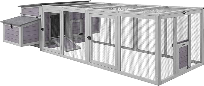 - Nesting Box And Tray: Chicken house with a 2-section nesting box makes it easy to deposit and collect eggs. The Metal Pull out tray collects droppings and waste, making this coop easy to clean