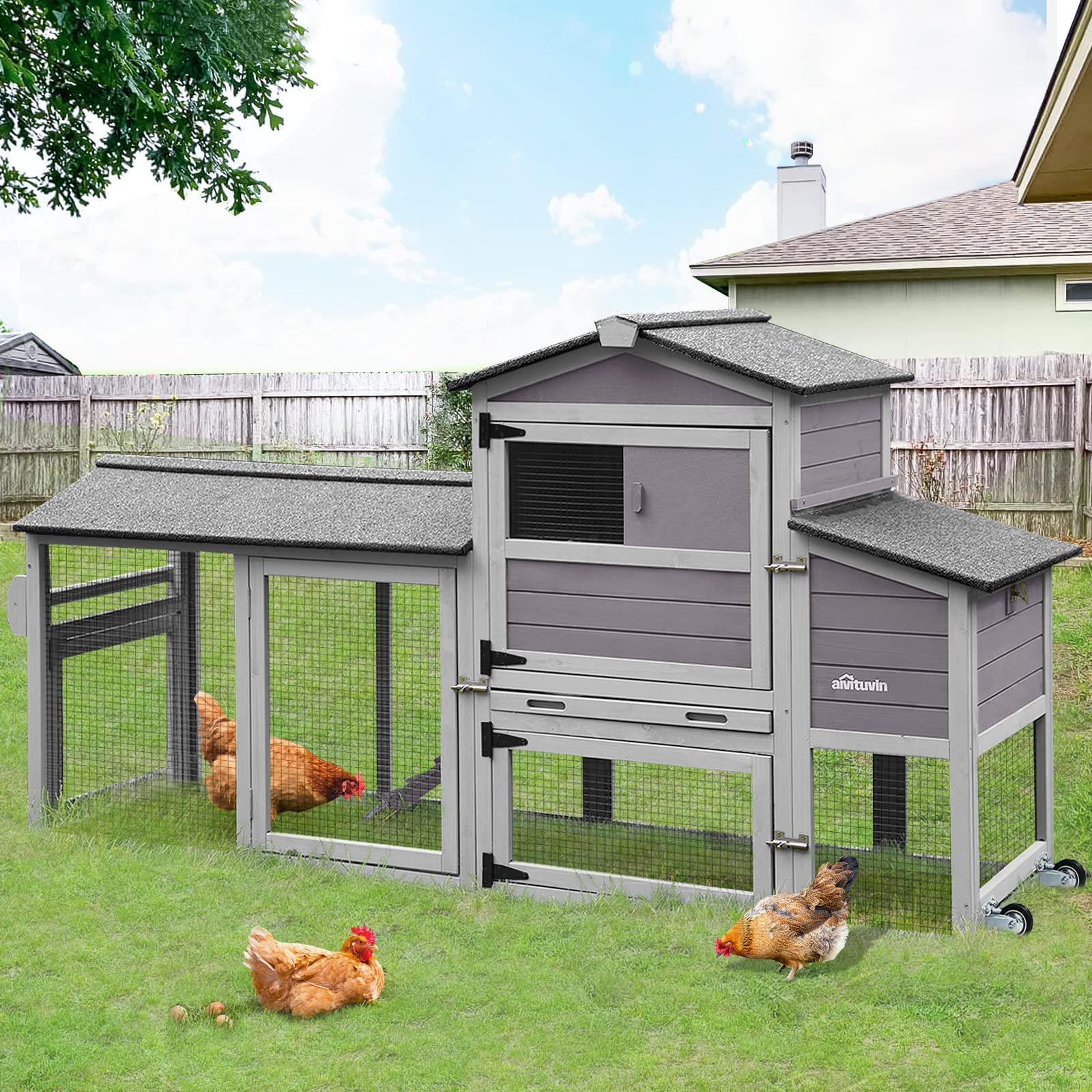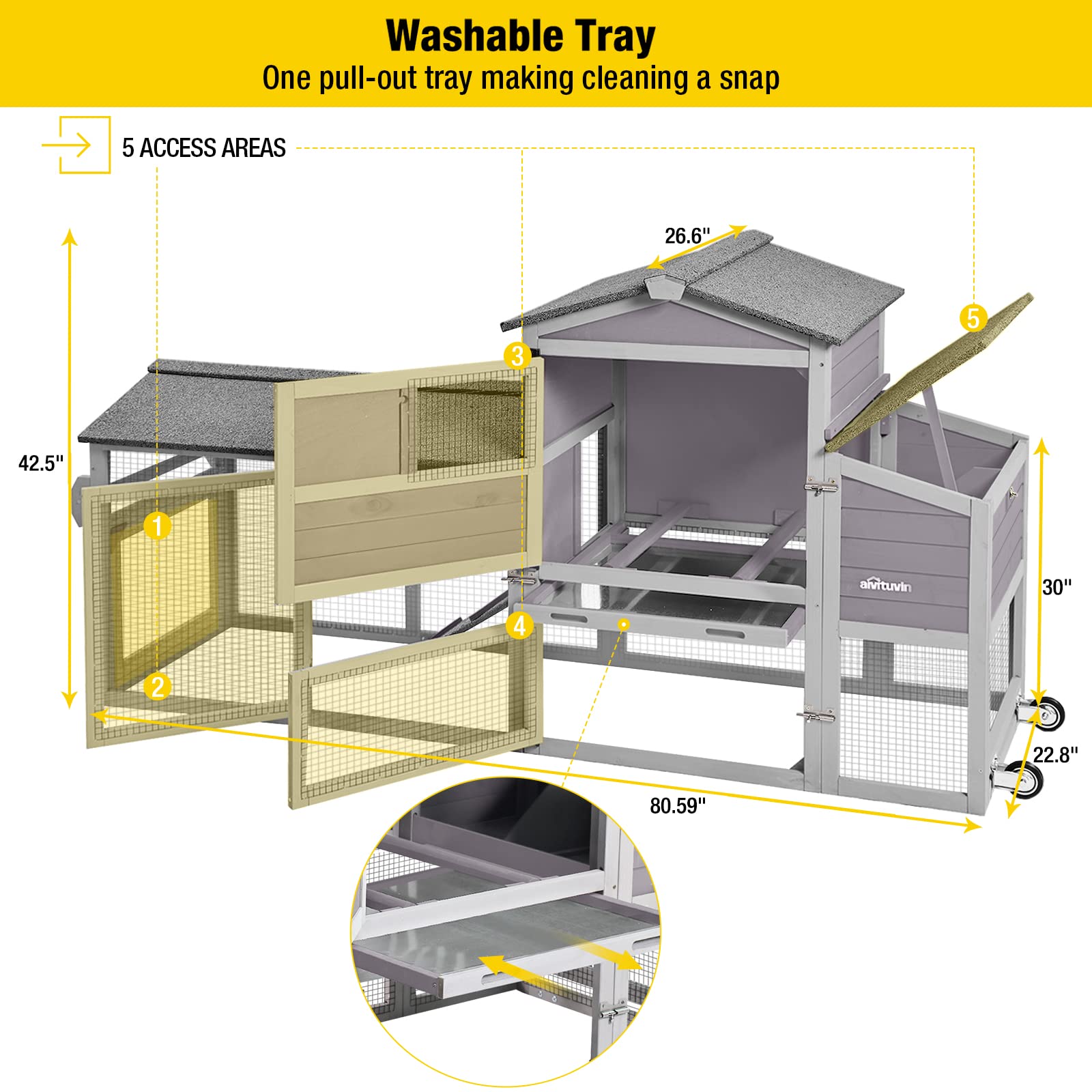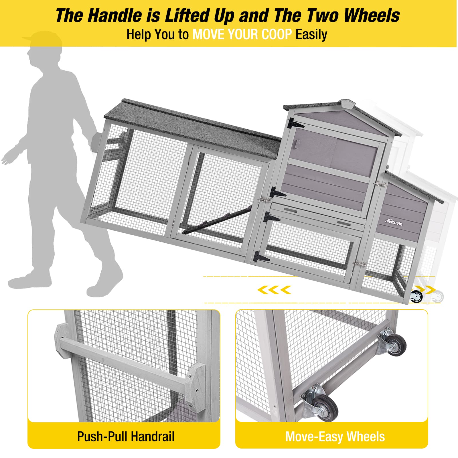 Movable Chicken Coop with Wheel and Run, Large Backyard Hen House with Nesting Box 80.6"