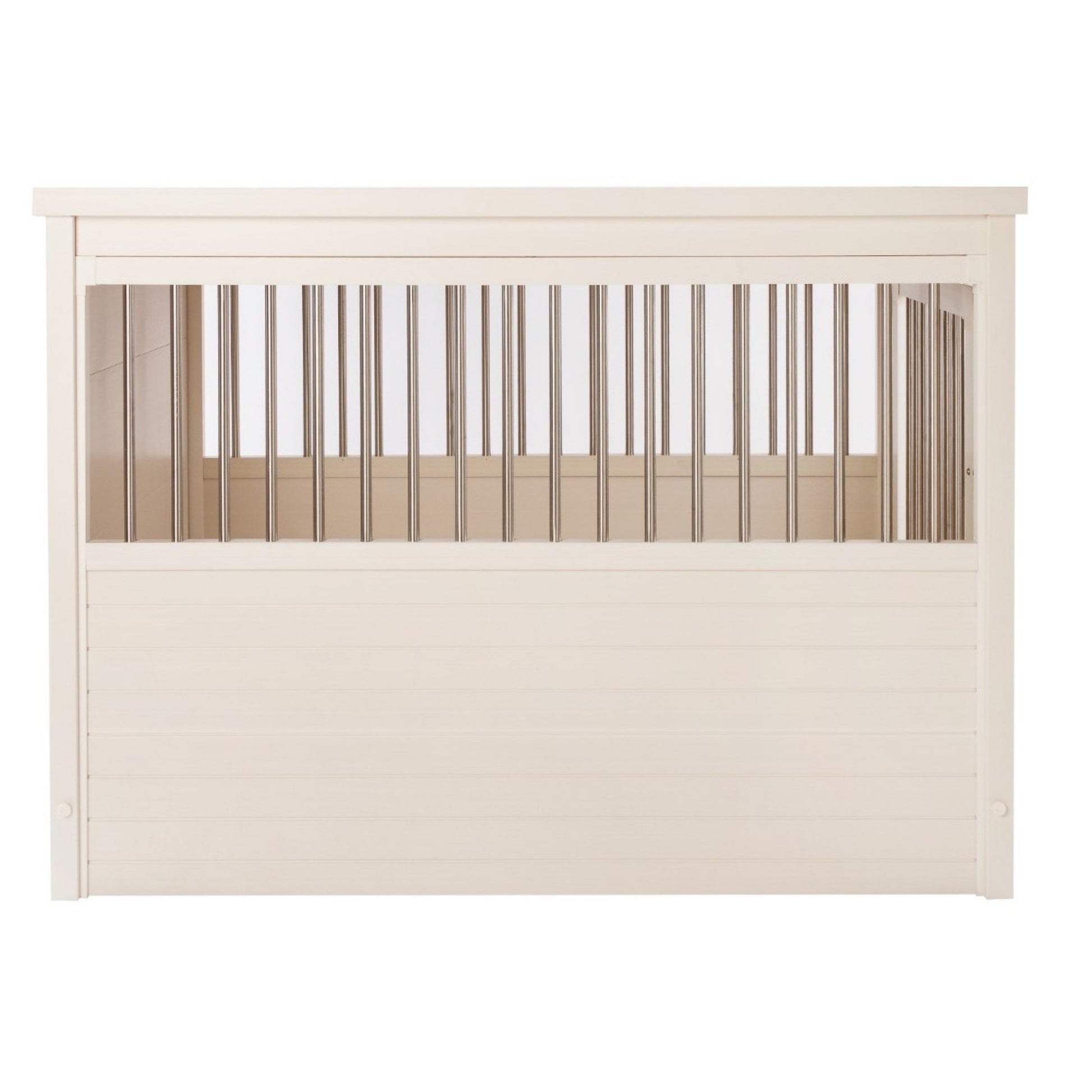 - Elegant way to house your pet while disguising the pet crate as a fashionable piece of furniture that can double as an end table
