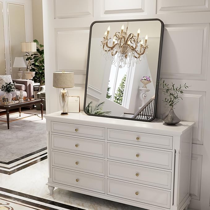 - "MAKE MOUNTING EASY" - All necessary accessories are included. By following the instructions, you can easily mount this lightweight black wall mirror by yourself within 10 mins