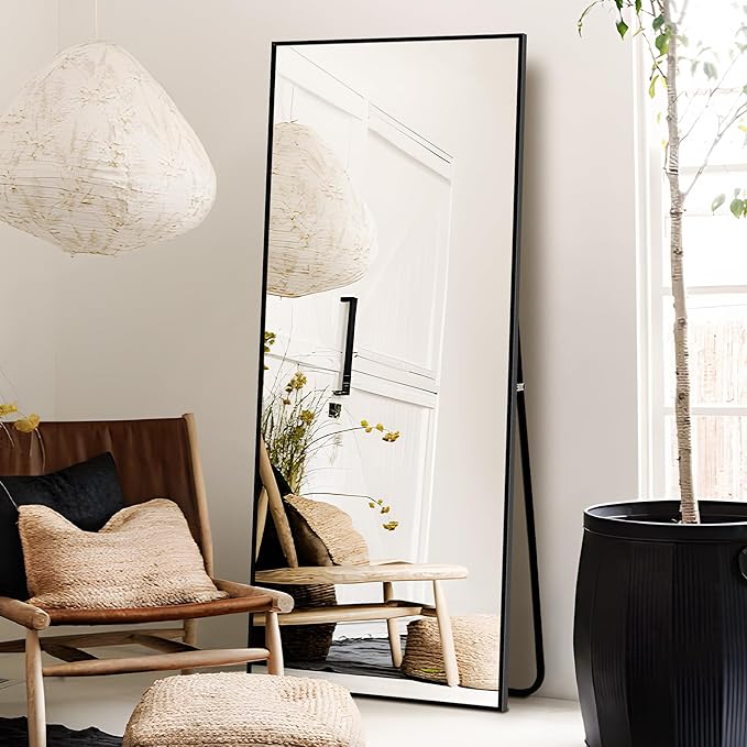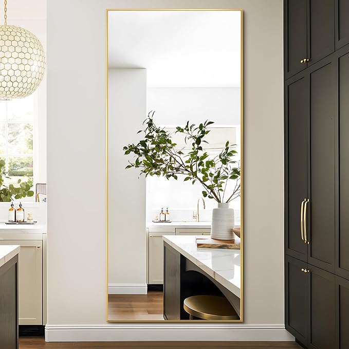- Our full length mirror boasts a robust and long-lasting aluminum alloy frame, fortified with careful polishing and a refined border for added elegance and durability.