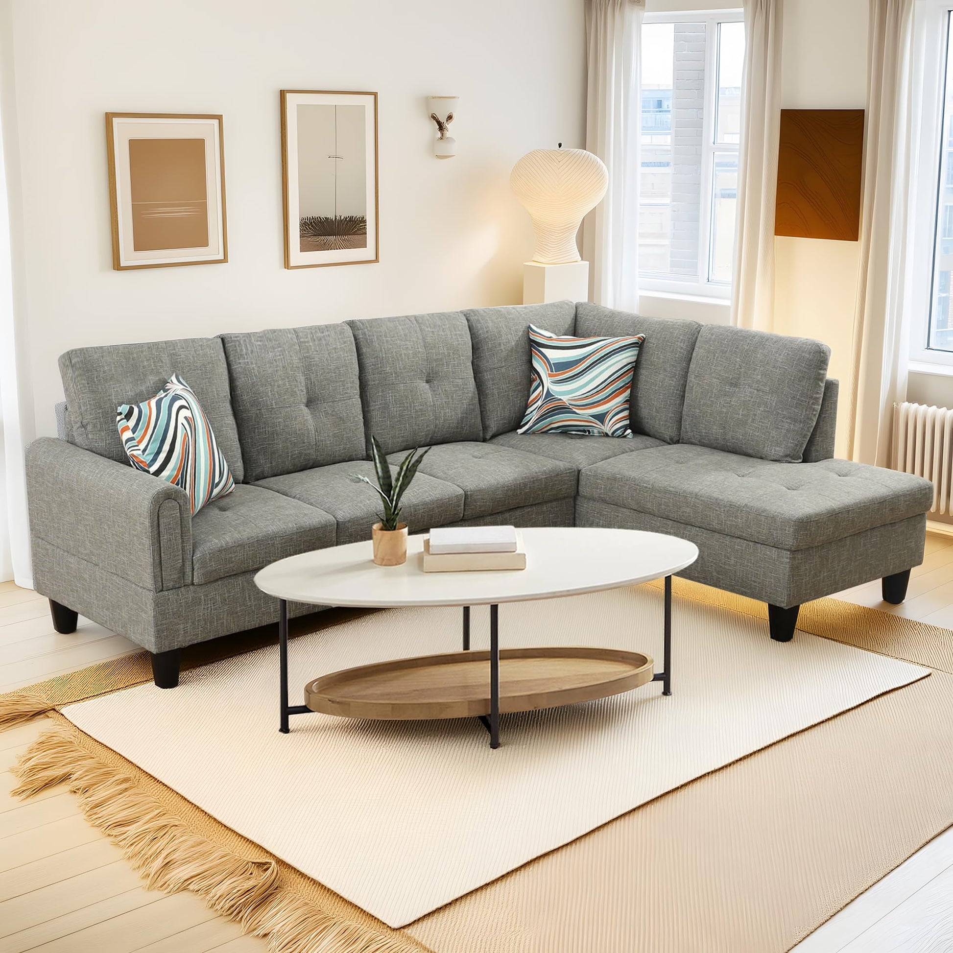 Couch 2 Pieces Sofa with Right Chaise Linen L Shaped Cloud Couch for Living Room