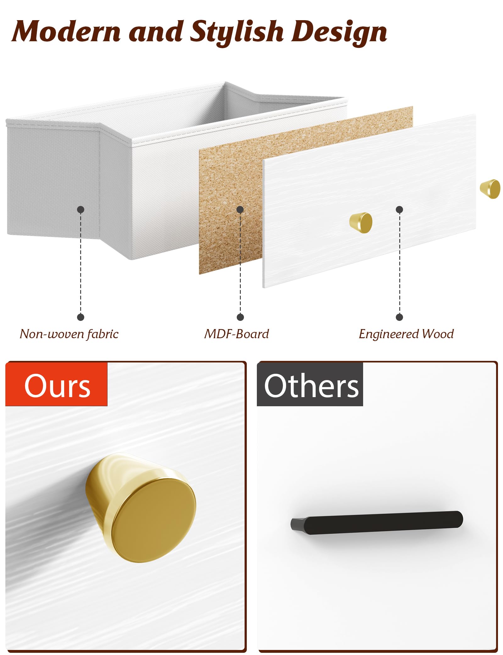 - This 3 drawer dresser has the look of solid wood, giving any room a bold furniture statement.The interior of the drawers is made of non-woven fabric, ensuring smoother and quieter gliding. Fabric drawers are free from unpleasant odors, allowing you to store items safely.