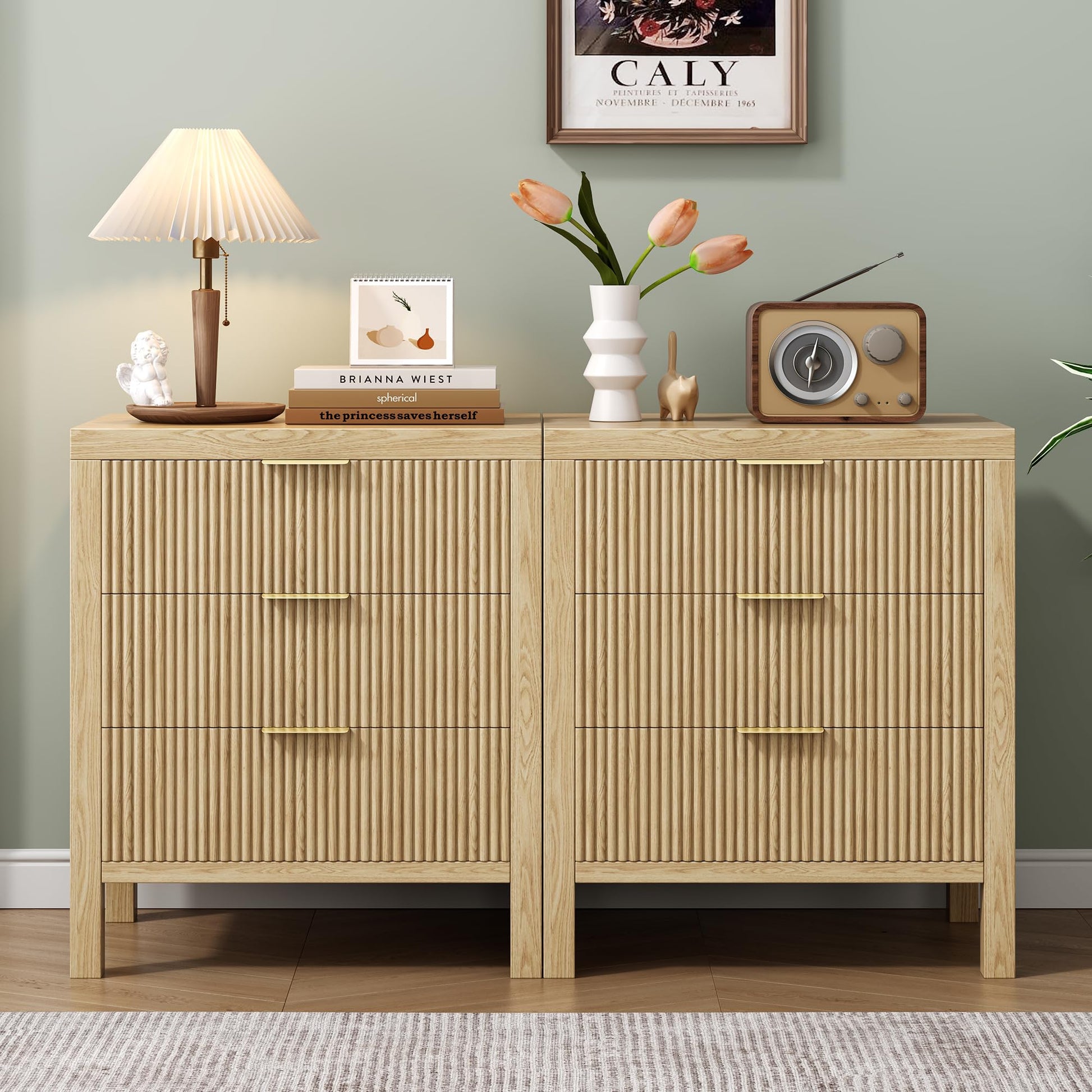 - The distinctive waveform fluted panel enhances the texture and spatial presence of this exceptional piece, making this side table suit many home decor, luxurious gold metal pull handles add appealing detail to this modern dresser.