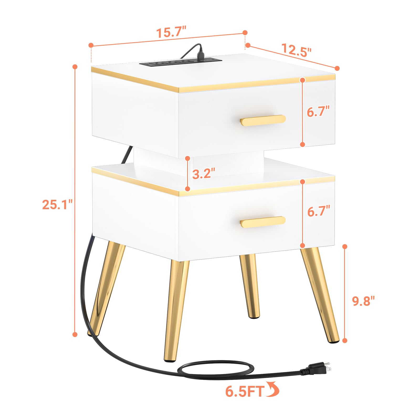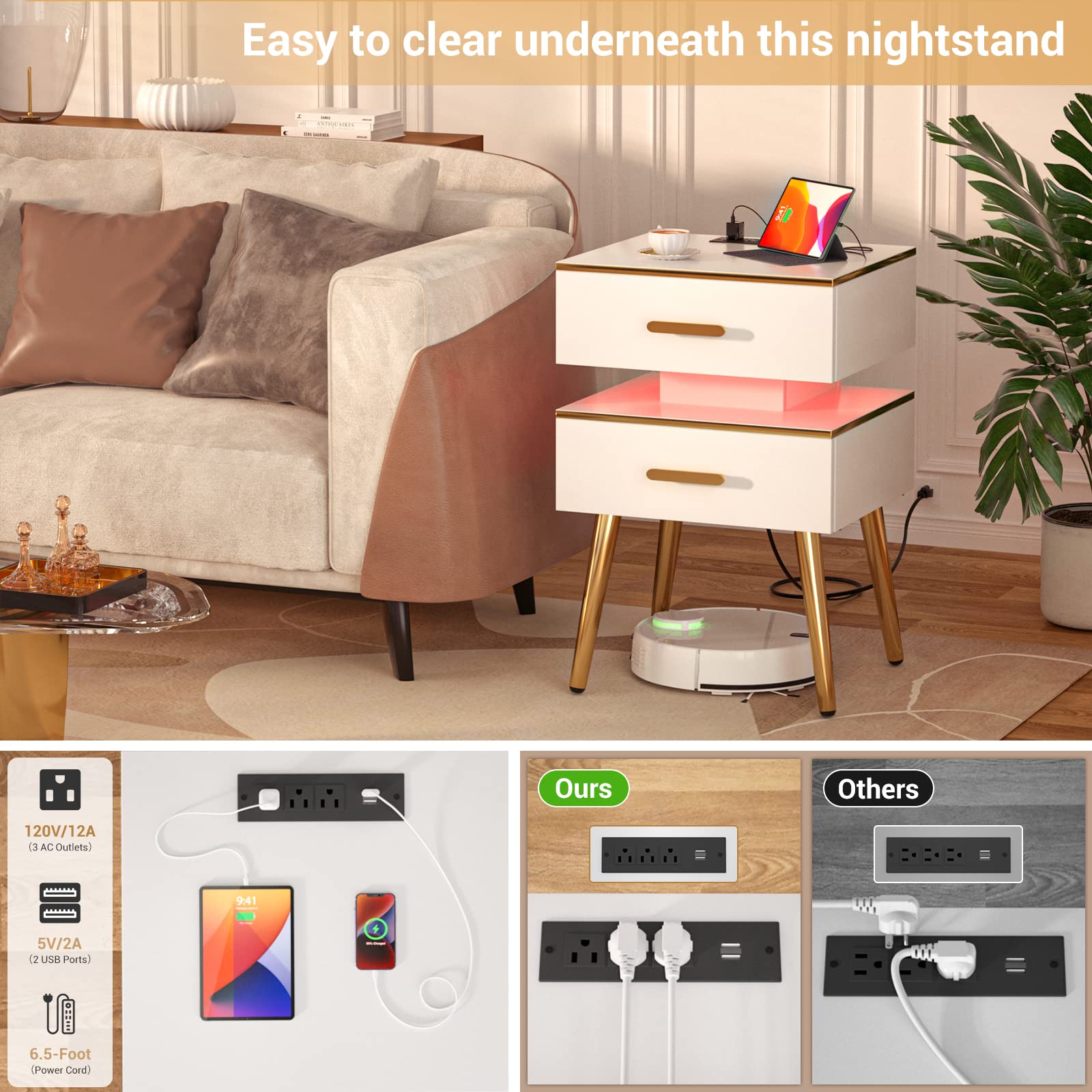 - Convenient for Charging Device - Our white nightstand with a charging station frees your charging requirements. 3 AC outlets and 2 USB ports are built-in on this modern nightstand. Convenient for you to hold and charge a bedside lamp, phone, smartwatch, and other electronic devices.