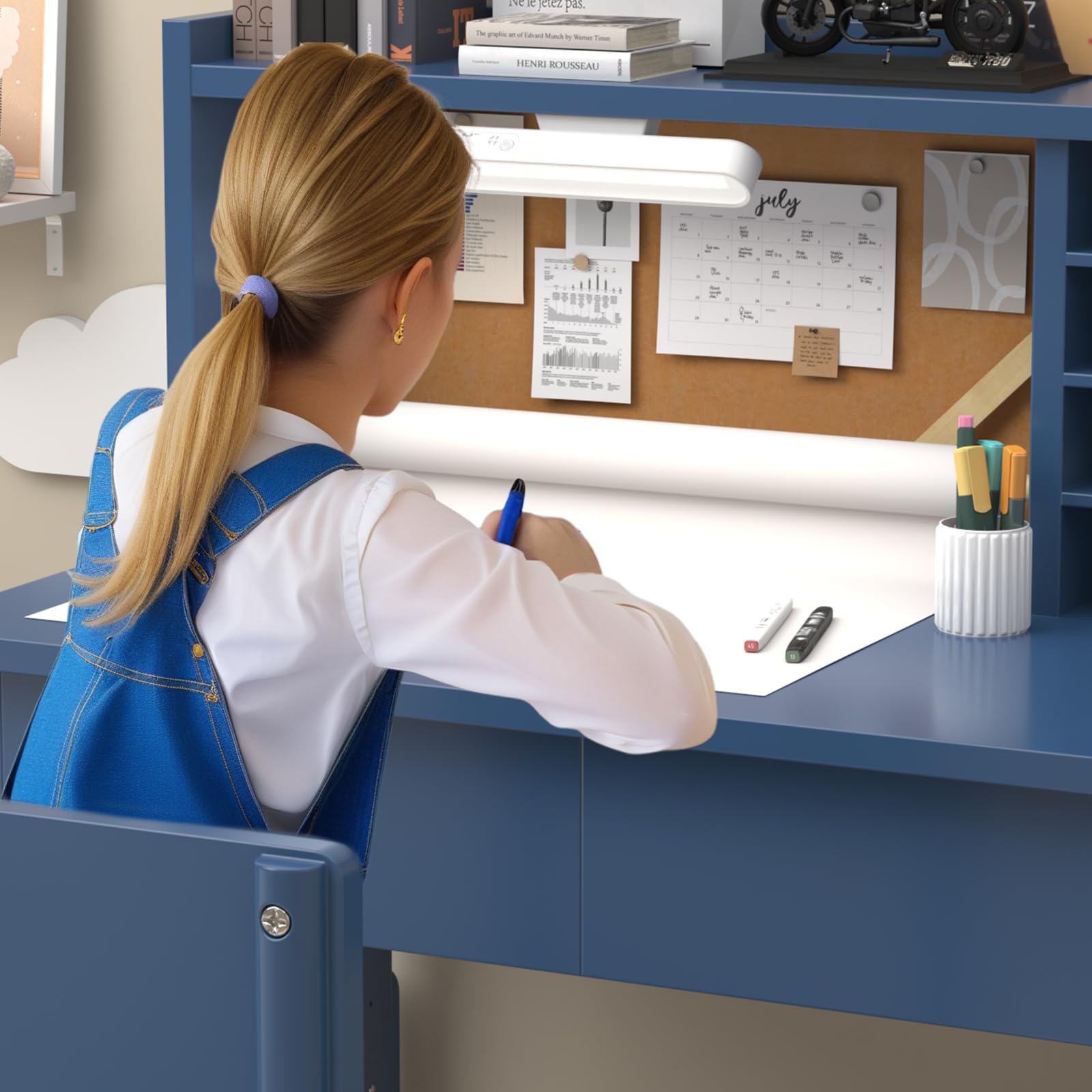 - kid desk equipped with detachable LED lamp,Easily paste the base of the lamp onto the computer desk for an immersive ambiance. 80° rotating multifunctional desk lamp with strong magnetic adsorption.Short press the switch to switch the light color: warm yellow, warm white, and cool white. adjust the brightness according to different scenes and needs by long pressing the switch. add a sense of glamor and style.This children's study desk is perfect for writing, drawing, reading, and more. By adjusting the brightness, children can be more focused on learning.-ZID6pN