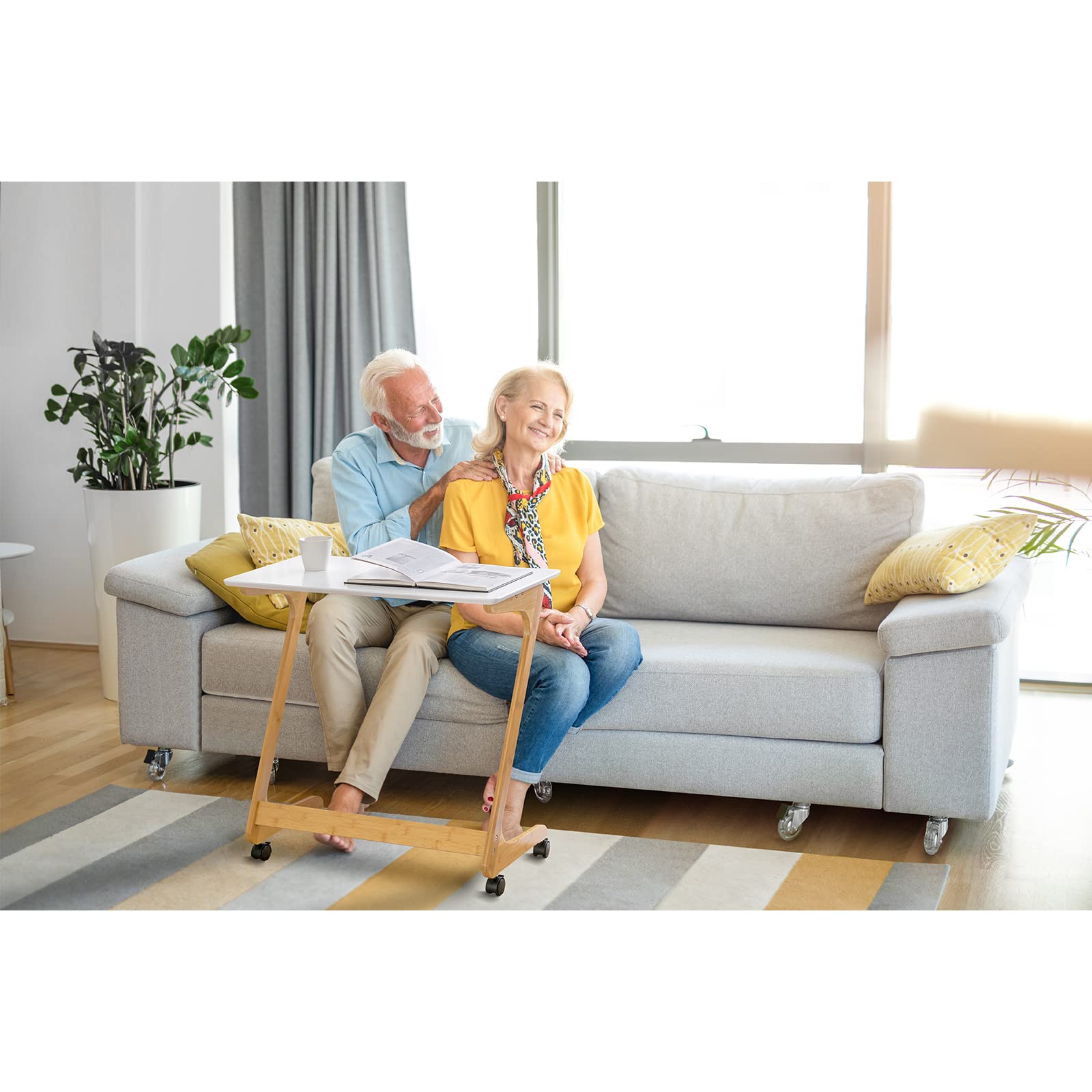 TV Tray Table with Wheels Sofa Side Table with Casters Couch Laptop Desk End Table Snack Tray