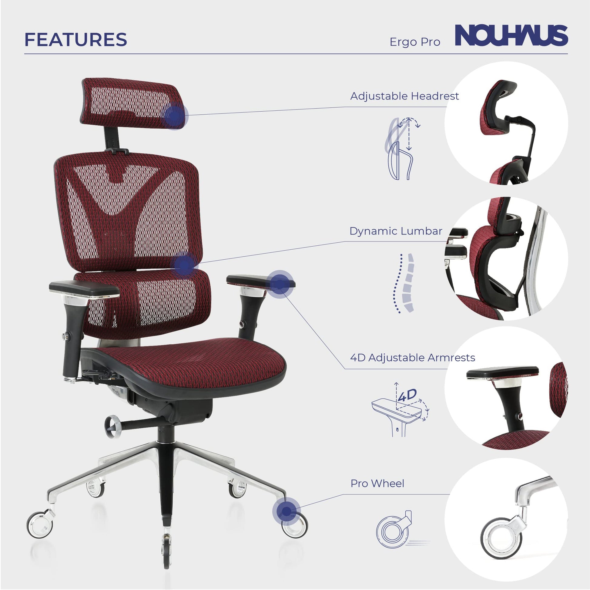 - Total Neck and Arm Support When it comes to desk chairs with wheels, arms and headrests, it’s usually the height of a person that is neglected. But not on the ErgoPRO! 4D Adjustable Armrests glide up/down, forward/back, side to side, and rotate right/left, while the adjustable head rest glides up and down, and tilts back and forwards. And they auto lock into place for full support and comfort.
