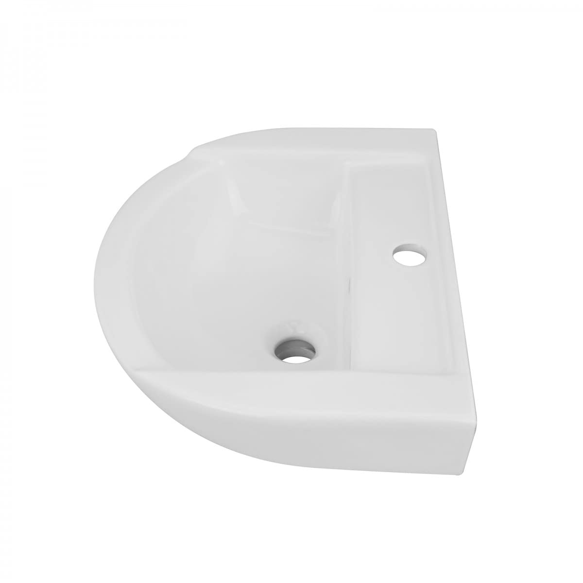 - SPECIFICATIONS - Sink Width = 18.75 In., Height = 7 In., Proj. = 14.38 In., Faucet Holes = 1, Colour - White, Shape - Semi Circle, Overflow - Yes, Installation - Wall Mount.