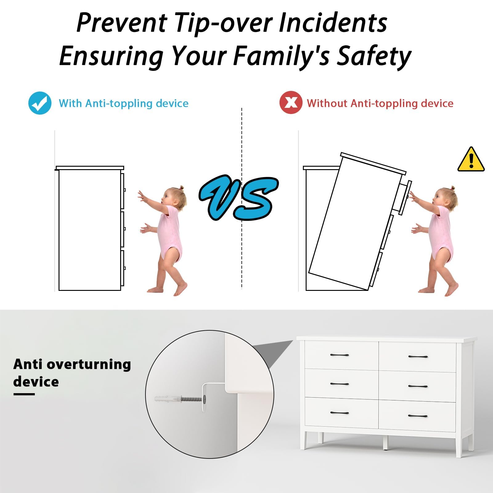 - Solid Structure: The quality engineered wood structure supported by solid wood legs gives the white modern dresser high stability and strong load bearing. With a premium MDF material this a truly timeless addition to your home that will last for years. Equipped with a safe anti-tipping device, you can safely secure the dresser to the wall.