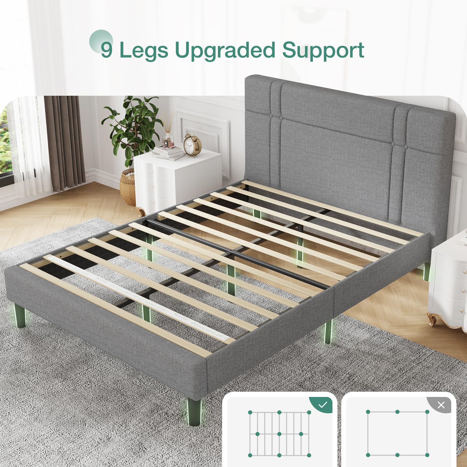 Full Size Bed Frame Upholstered Platform Bed Frame Full Bed Frame with Headboard,