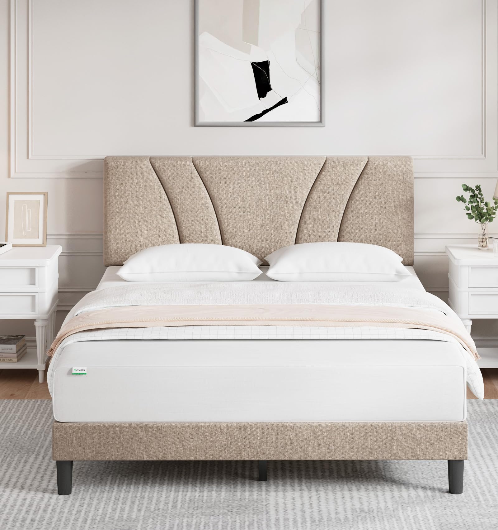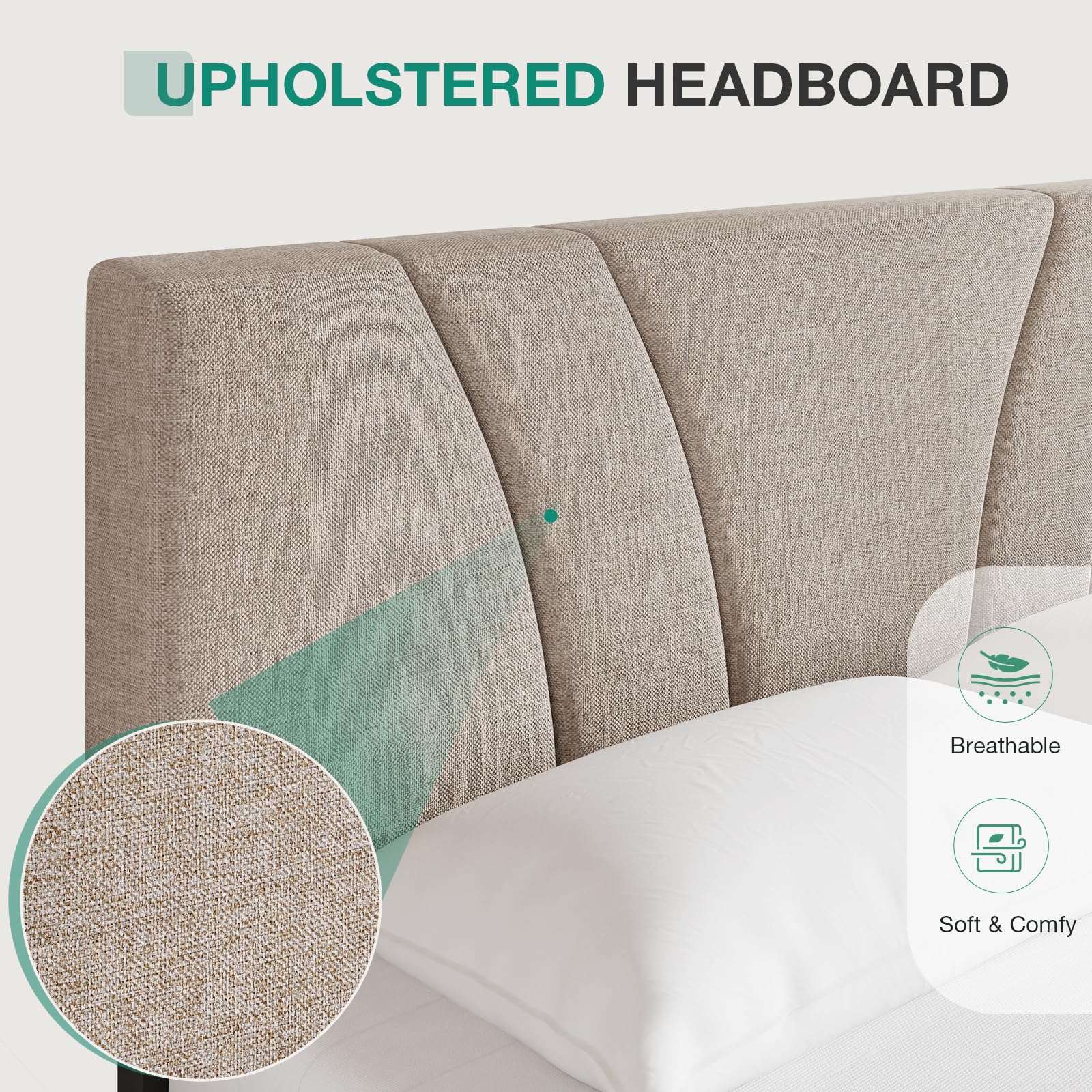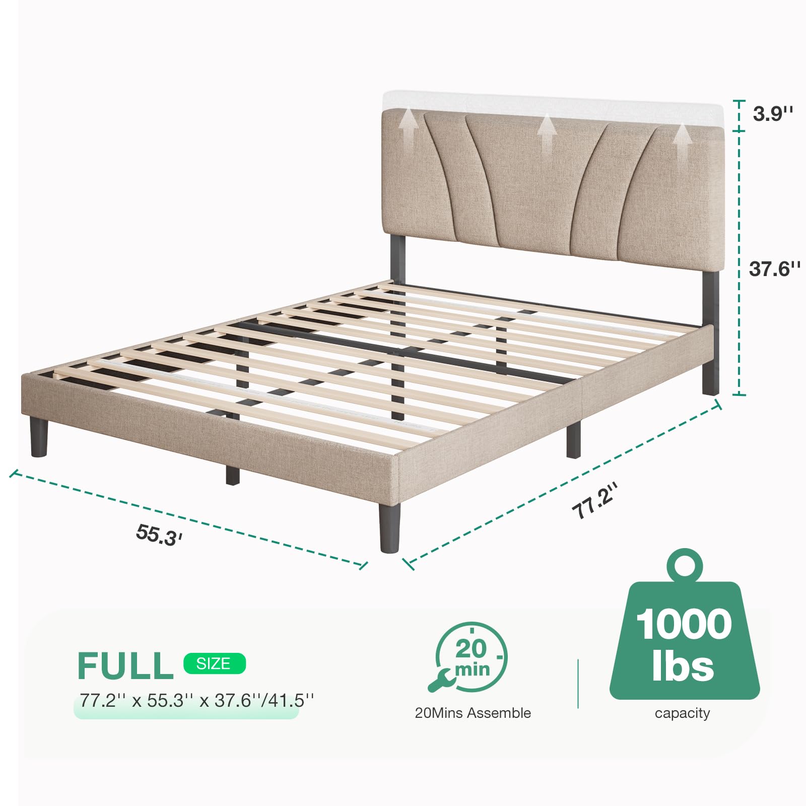 - Stylish and Comfortable: The full size bed frame and headboard crafted from premium linen fabric, featuring foam padding for a comfortable touch. With clean, sleek lines, the minimalist design seamlessly complements any bedroom decor, adding a touch of elegance and sophistication to your space.
