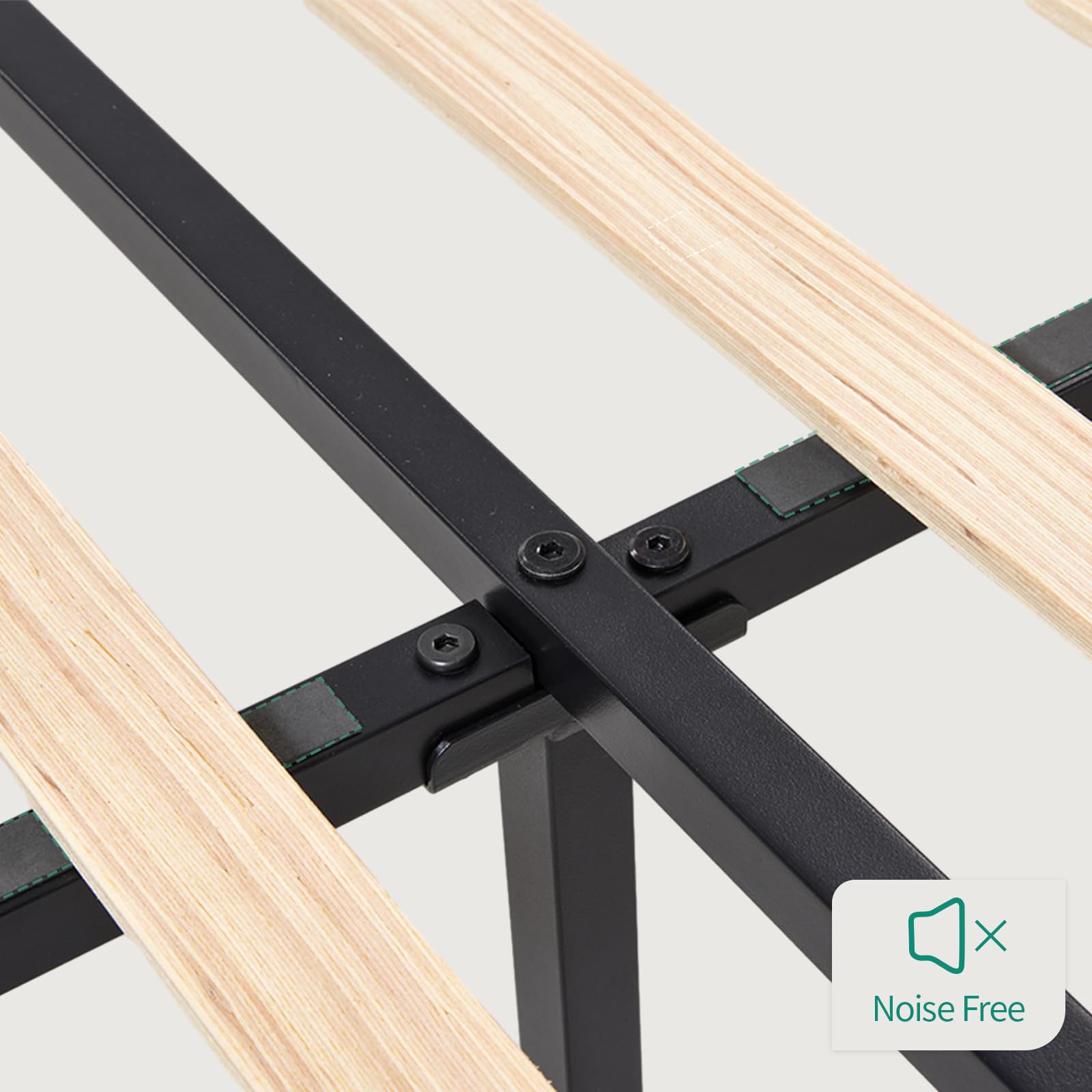 - Silent Sleep Experience: Our full bed frame is equipped with cushioned silent pads on the central support tube, ensuring you drift off to sleep. The slats are designed with velcro for easy installation, reducing potential noise disruptions. Enjoy a tranquil and comfortable sleep experience with our full size bed frame.