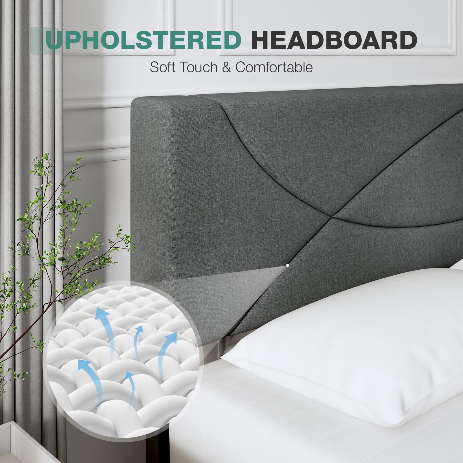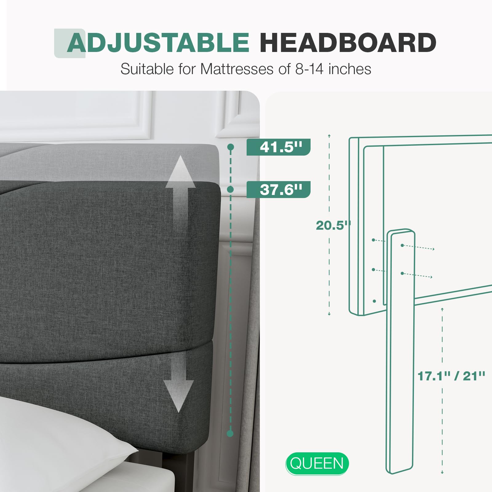 Queen Size Bed Frame Upholstered Platform Bed with Adjustable Headboard,