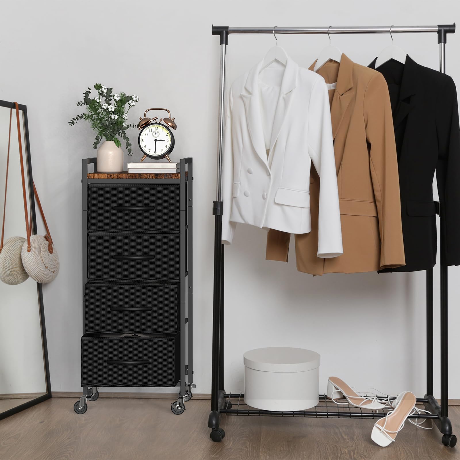 - Dressers with 4 Fabric Drawers:The storage tower with drawers has 4 detachable and foldable drawers that can be disassembled and folded according to your needs. Easy to pull handles help easily open and close drawers, ensuring your items are properly stored.