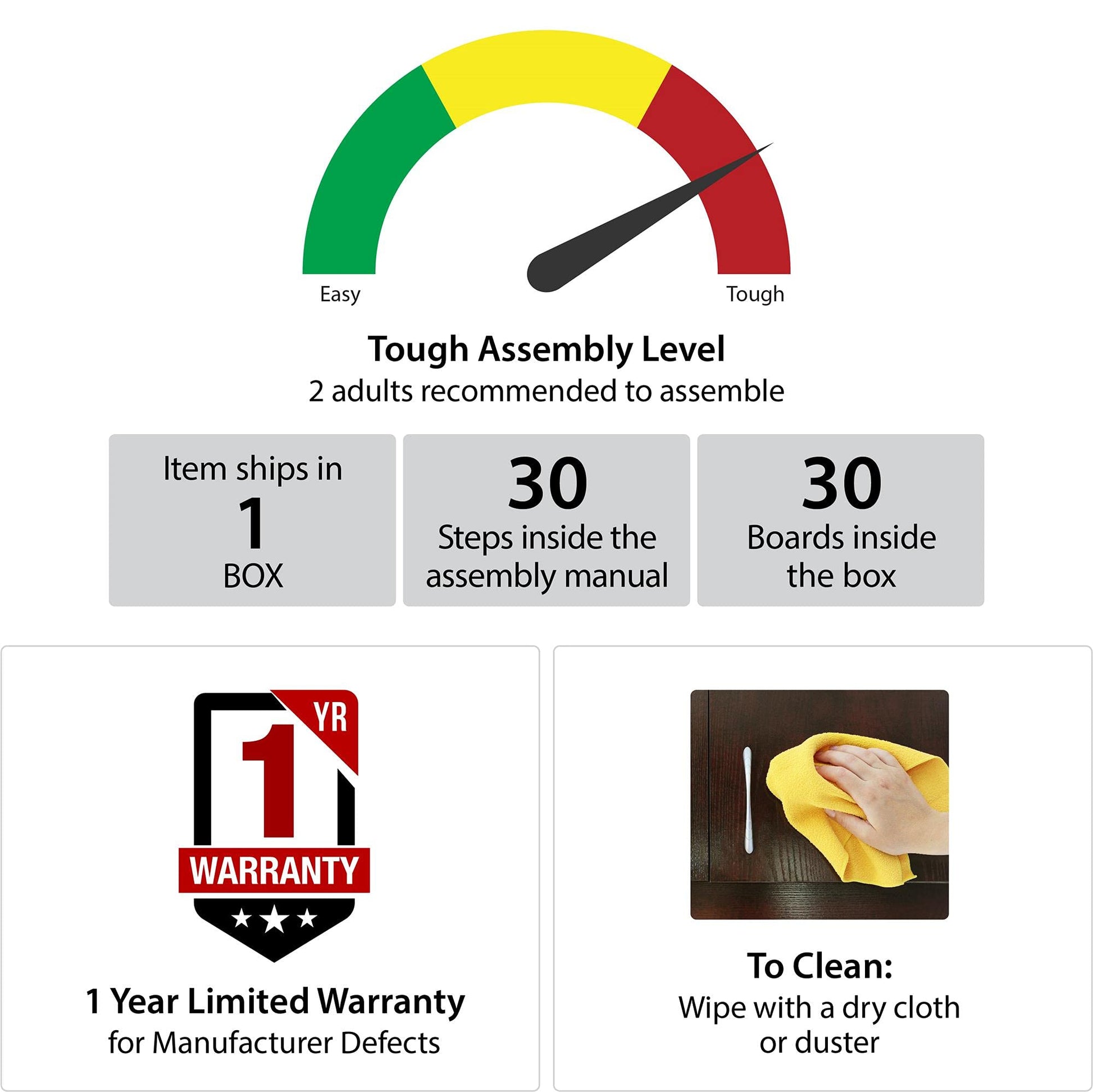 - The Media Dresser and Desk ships flat to your door and 2 adults are recommended to assemble. The TV Stand can hold a TV up to 39” or 40 lbs. The component cubby and each Dresser drawer can hold 25 lbs. The adjustable Bookcase shelf holds 20 lbs. and the fixed shelf can hold 40 lbs. The desktop will accommodate up to 100 lbs. Assembled dimensions: 37.28”H x 71.97”W x 19.69”D