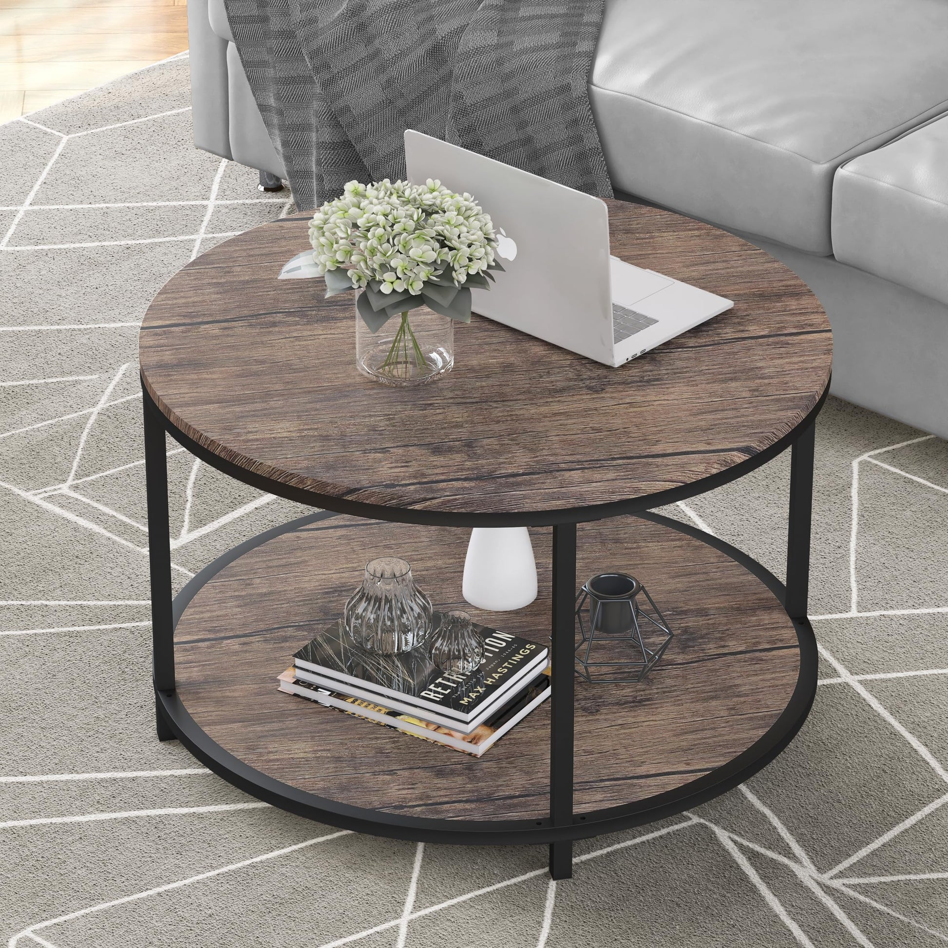 - [2-Tier Coffee Table] This coffee table boasts a spacious round top, measuring 25.6 inches in diameter, perfect for keeping your living room supplies organized and your daily essentials close at hand. The additional 24.5-inch bottom shelf provides ample storage space for magazines and toys, helping you maintain a neat and tidy living space.