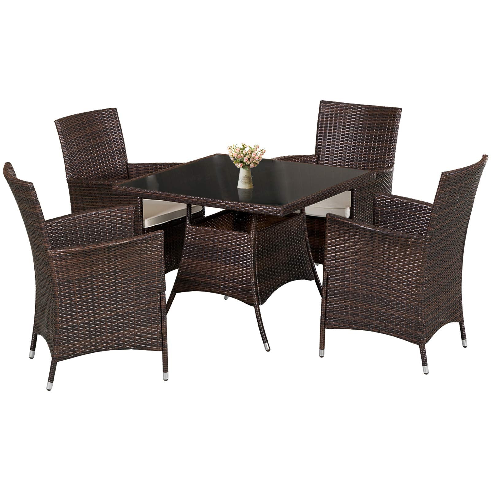 5-Piece Patio Furniture Outdoor Wicker Dining Set Table and 4 Chairs