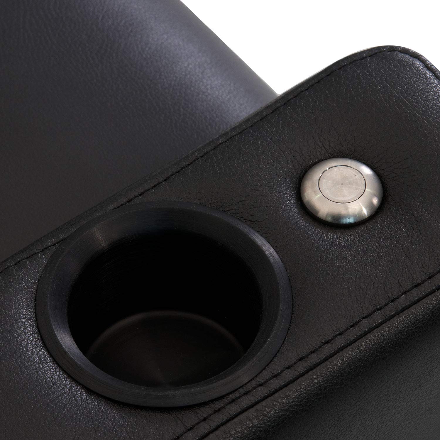 - TOP-NOTCH COMFORT & DETAIL: Chaise style footrest for continuous leg support & stylish espresso wood block feet. Brushed silver metal drink holders that can easily be removed for cleaning.