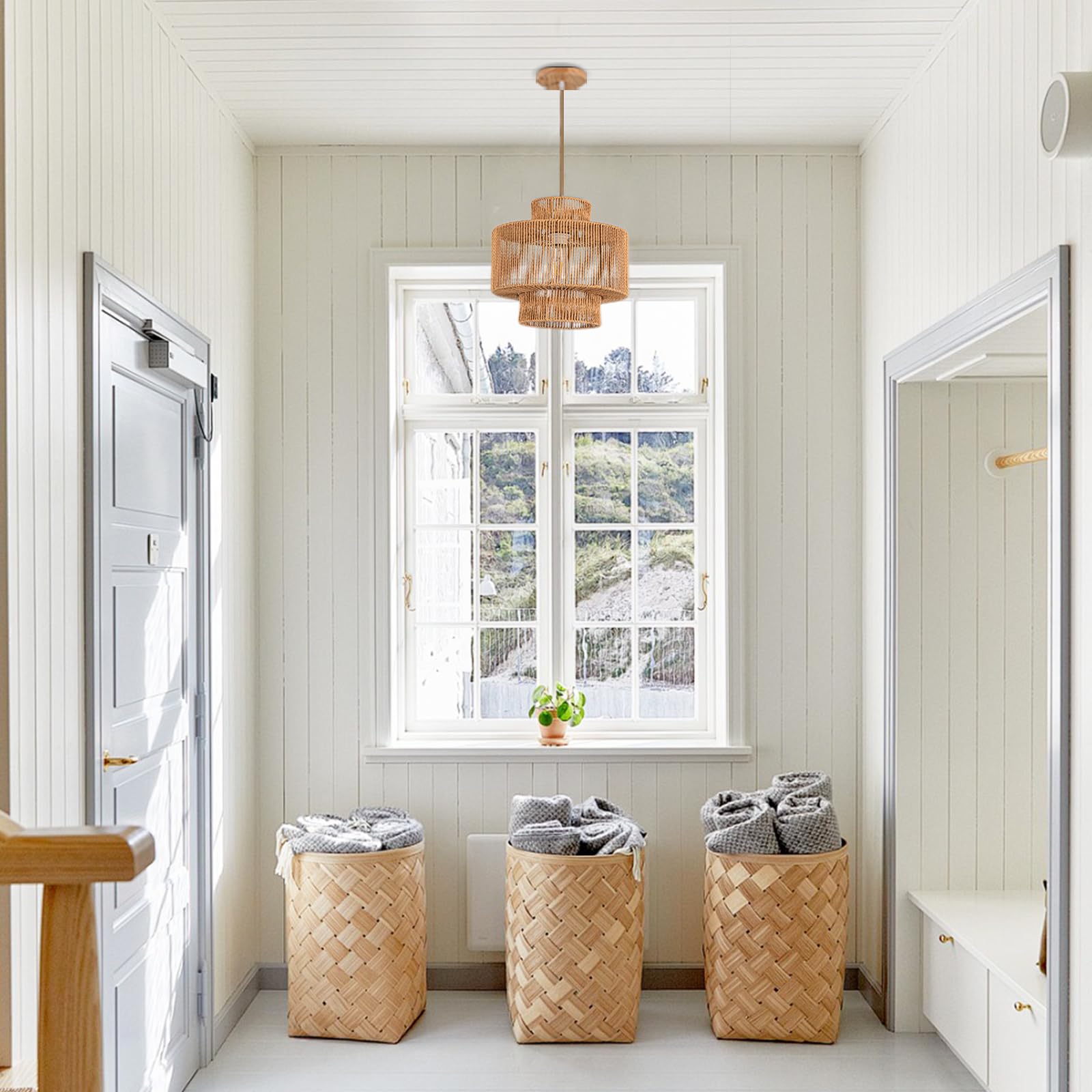 - Hand-woven Hanging Lighting:The foldable weave lampshade enables a portable and safe packing.This boho pendant light glows some beautiful light spread around the space,adds multiple natural wicker hanging light over a kitchen island to add a coastal vibe to your home.