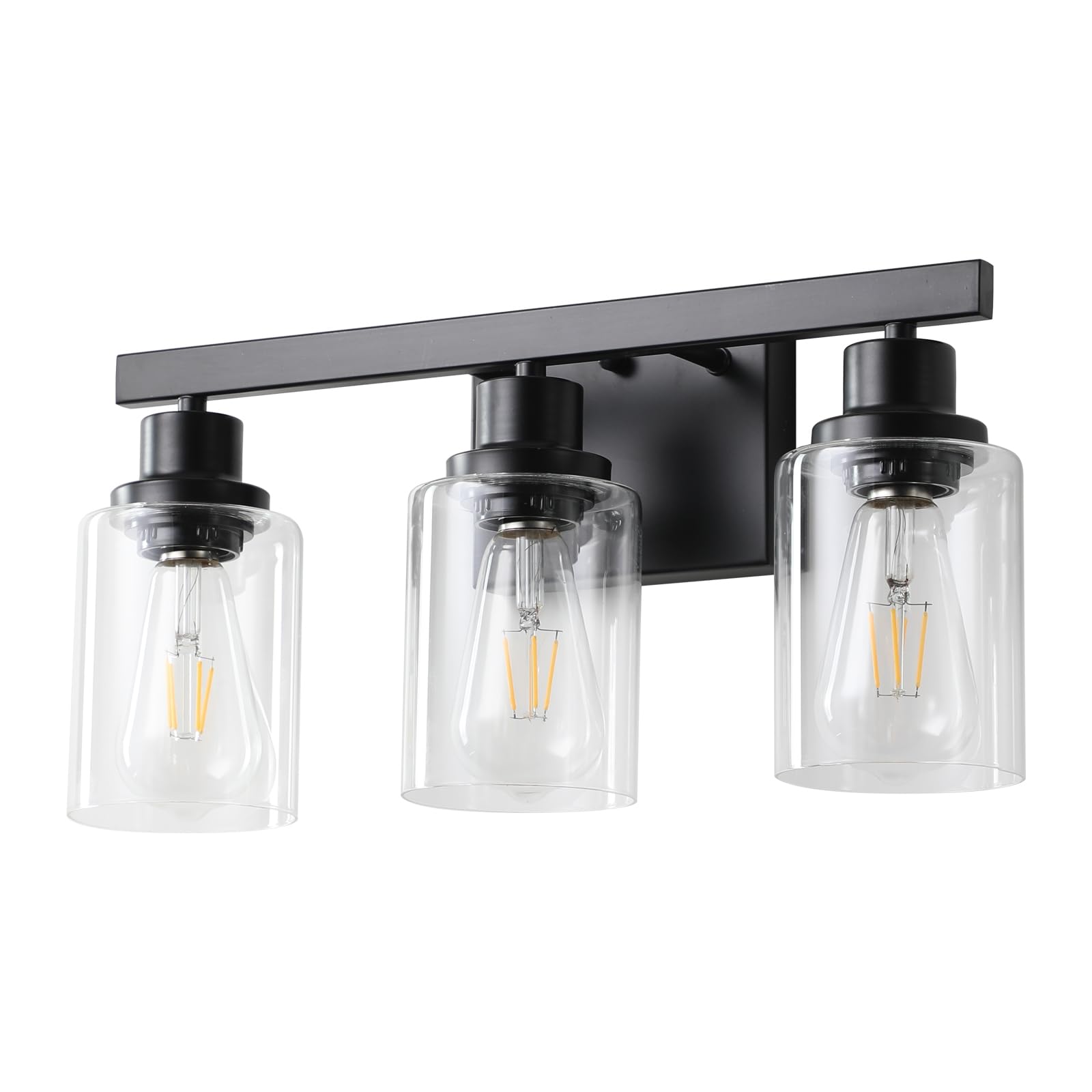 - MODERN & ELEGANT DESIGN: Our 3 Lights bathroom vanity light was created by professional designers for a sophisticated design with a modern twist. Featuring a sleek black matte body with a clear cylindrical glass shade, this sconce is perfect for any style, from contemporary to rustic. Gorgeous bathroom sconces add a splash of color to your home and are perfect for home lighting
