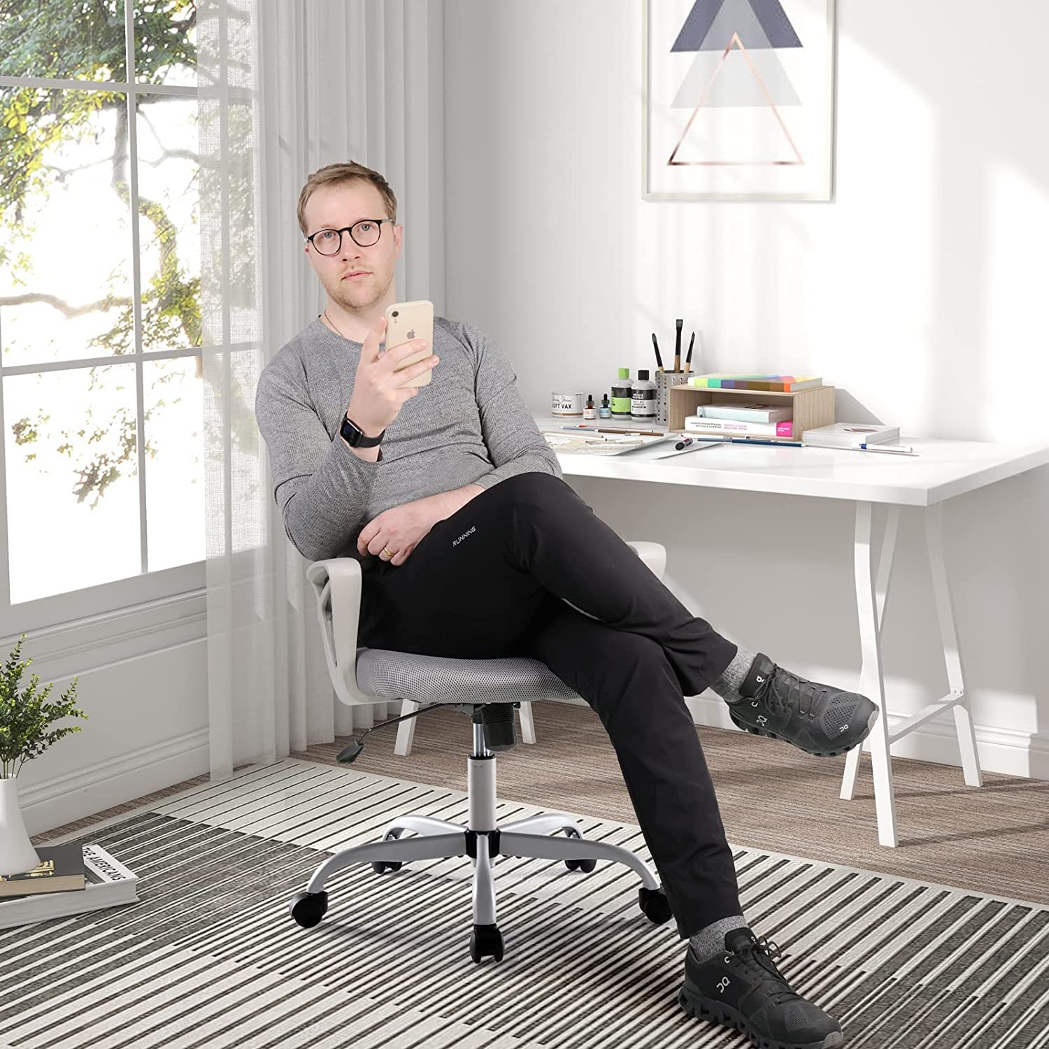 - Swivel Office Chair: The computer desk chair heavy-duty base with 360-degree swivel wheels, running smoothly and quietly on the hard floor, carpet floor, and more.