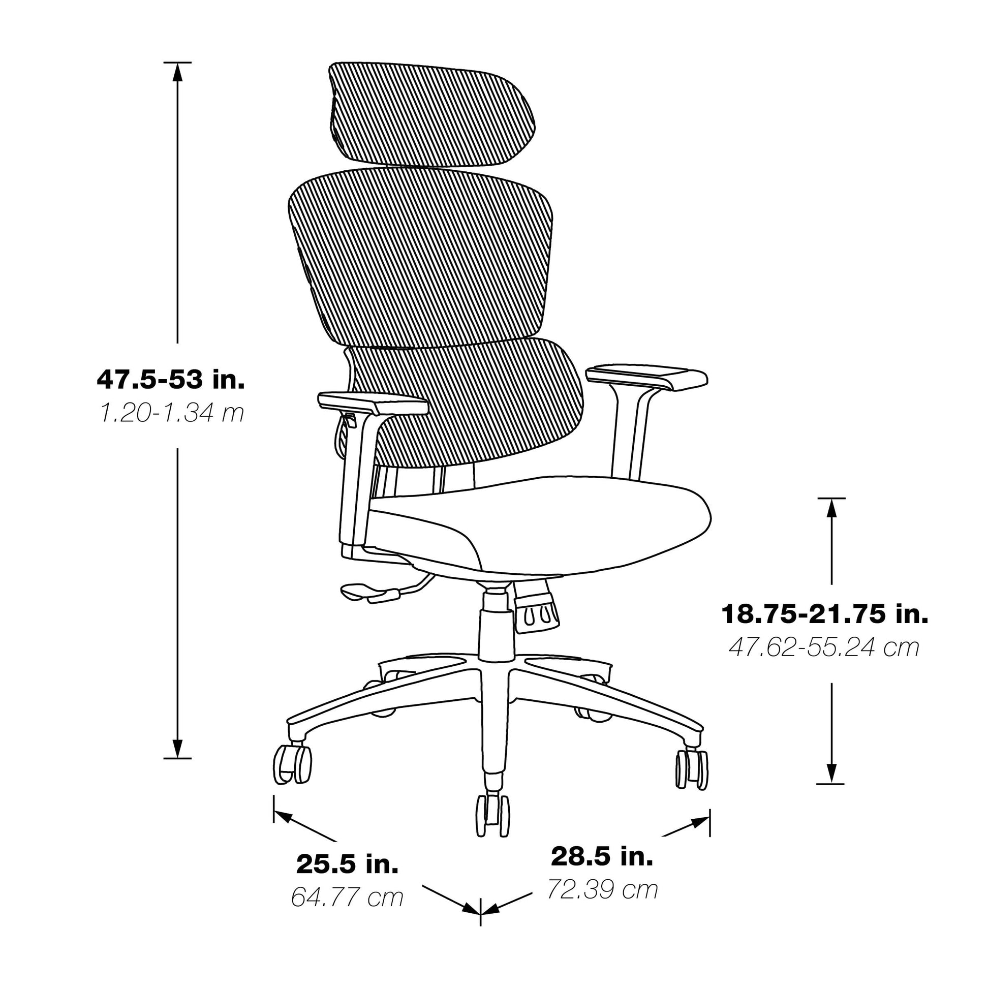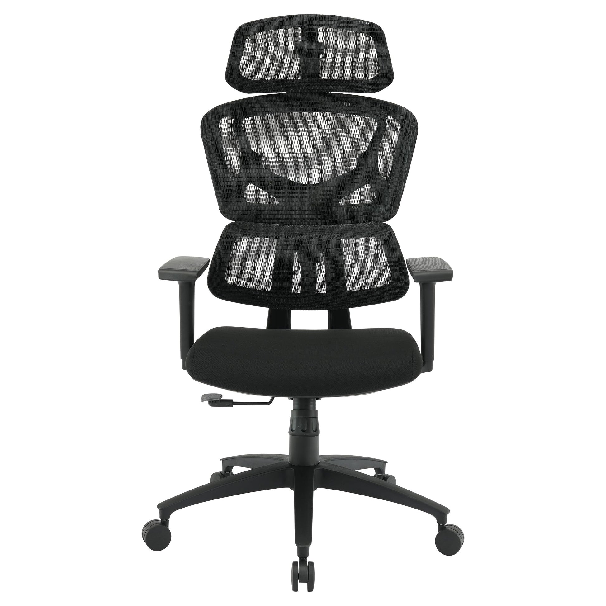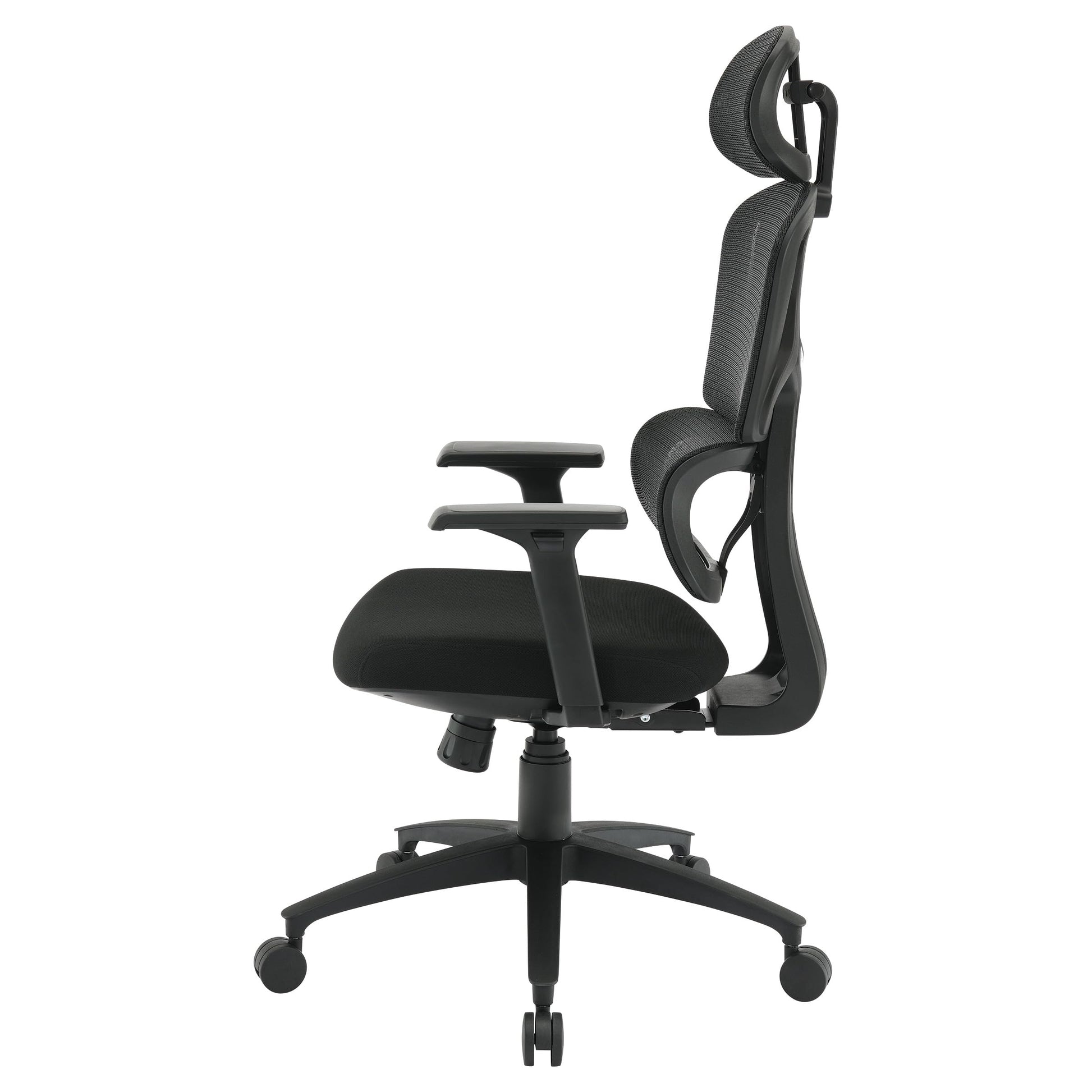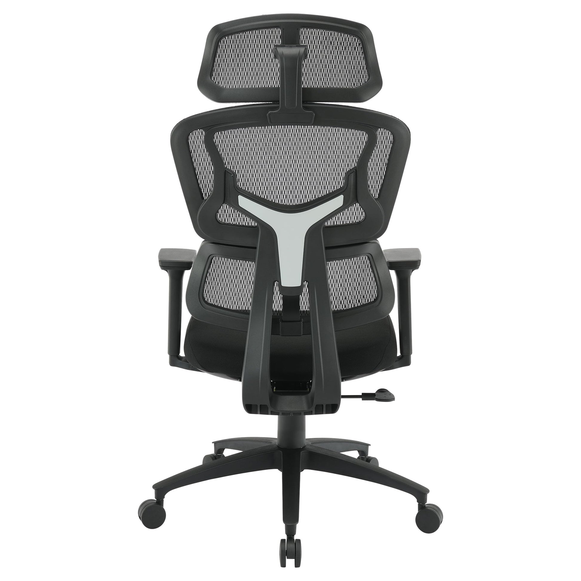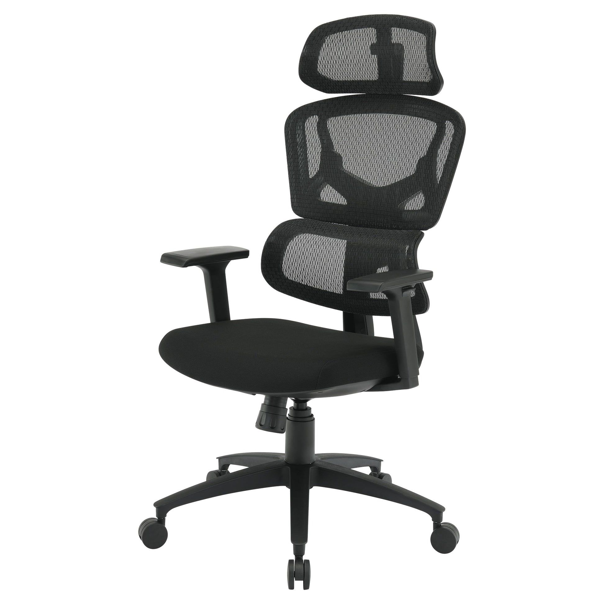 - Our Manager's Chair, featuring a breathable mesh back with built-in lumbar support, adjustable headrest and padded fabric seat, ensures all-day comfort.