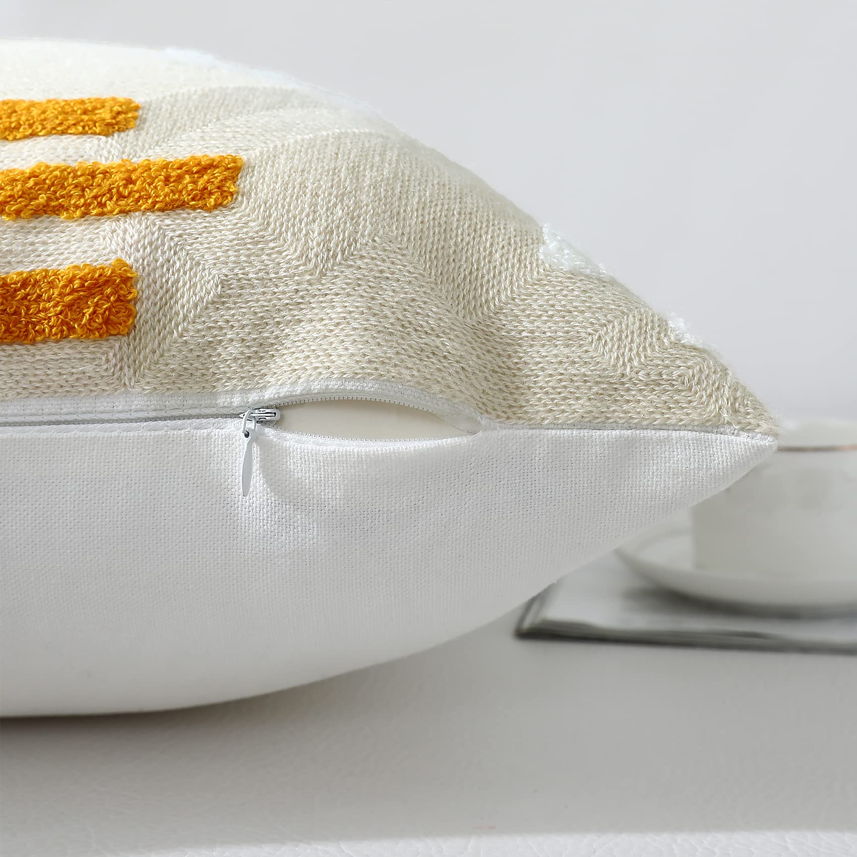 - BOHO DESIGN: its simple yet unique cute boho designs combined with embroidered patterns and mixed colors, these boho throw pillow covers have a great designer look and feel, and will definitely stand out in the mix. The hidden zipper on the edge is durable and works smoothly.