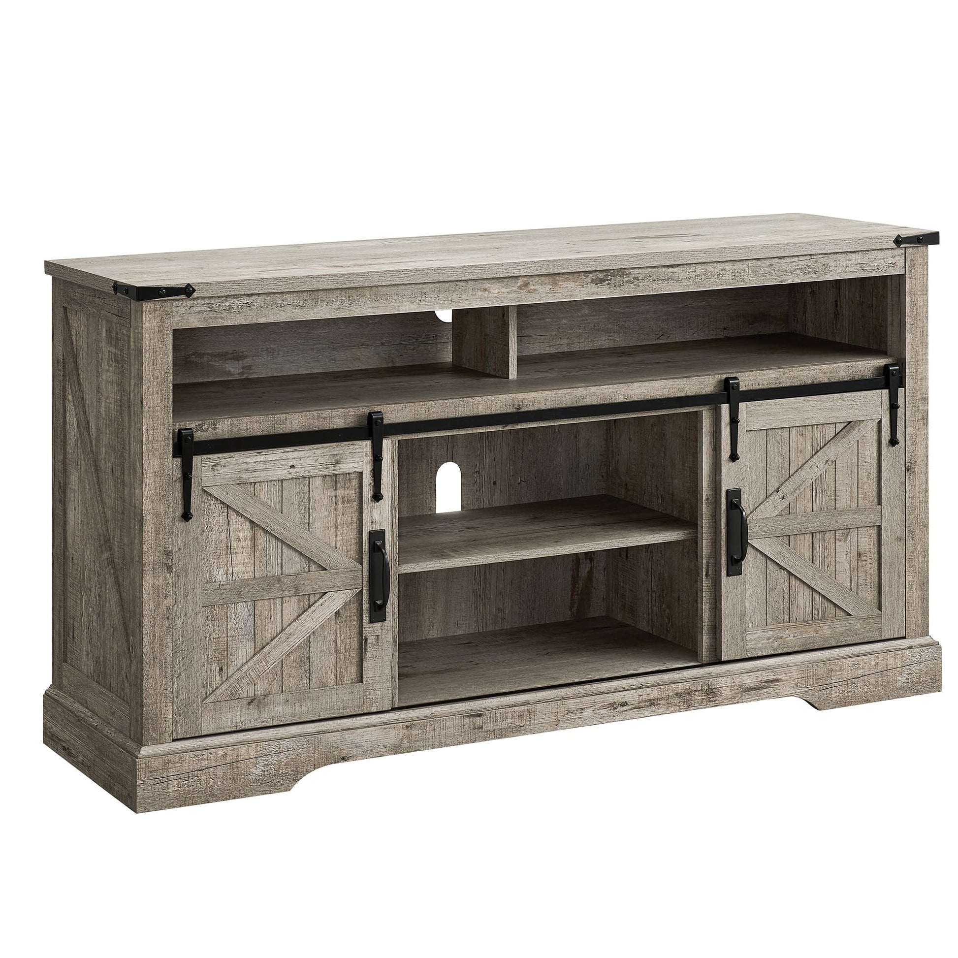 - Ample and Flexible Storage: Each storage cabinet has adjustable end shelves which offer lots of storage, while the 6.3 inch stationary middle shelves are roomy for housing media equipment. Two sliding barn doors can easily be positioned as you desire. For an uncluttered look, you can slide the doors over the two ends and use those areas for hidden storage.