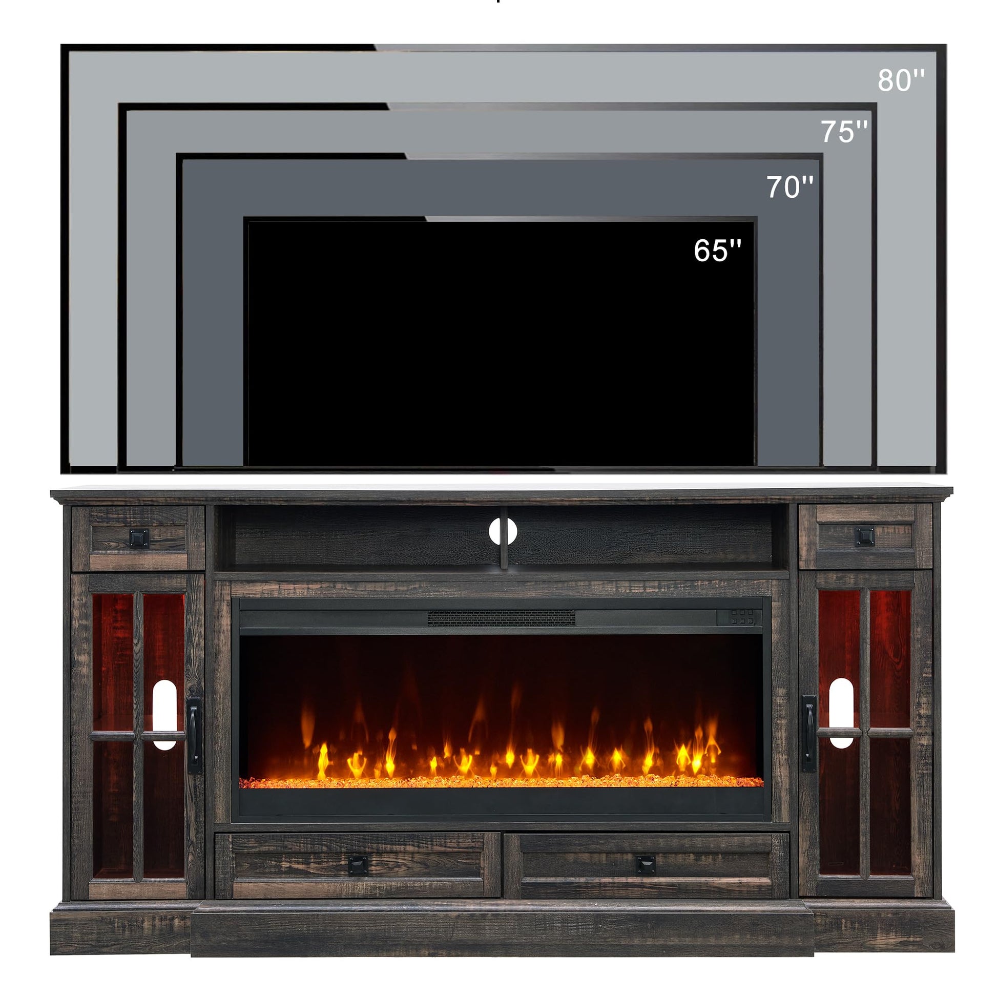 Fireplace TV Stand for 80 Inch TV, Farmhouse Entertainment Center with 42" Fireplace