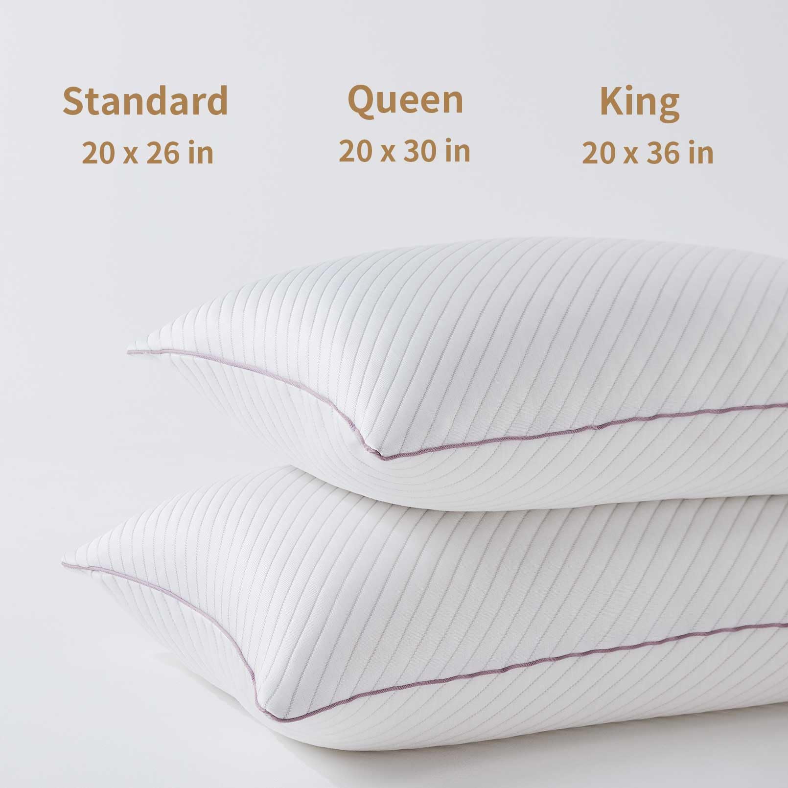 - Support:The new shredded memory foam fillings provides excellent resilience and support.We queen pillows set of 2 also add soft microfiber to the fillings,The bed pillows combines support and softness with comfort.It is also long-lasting, ensuring you get the support you need for years to come,Say Goodbye to Flat.