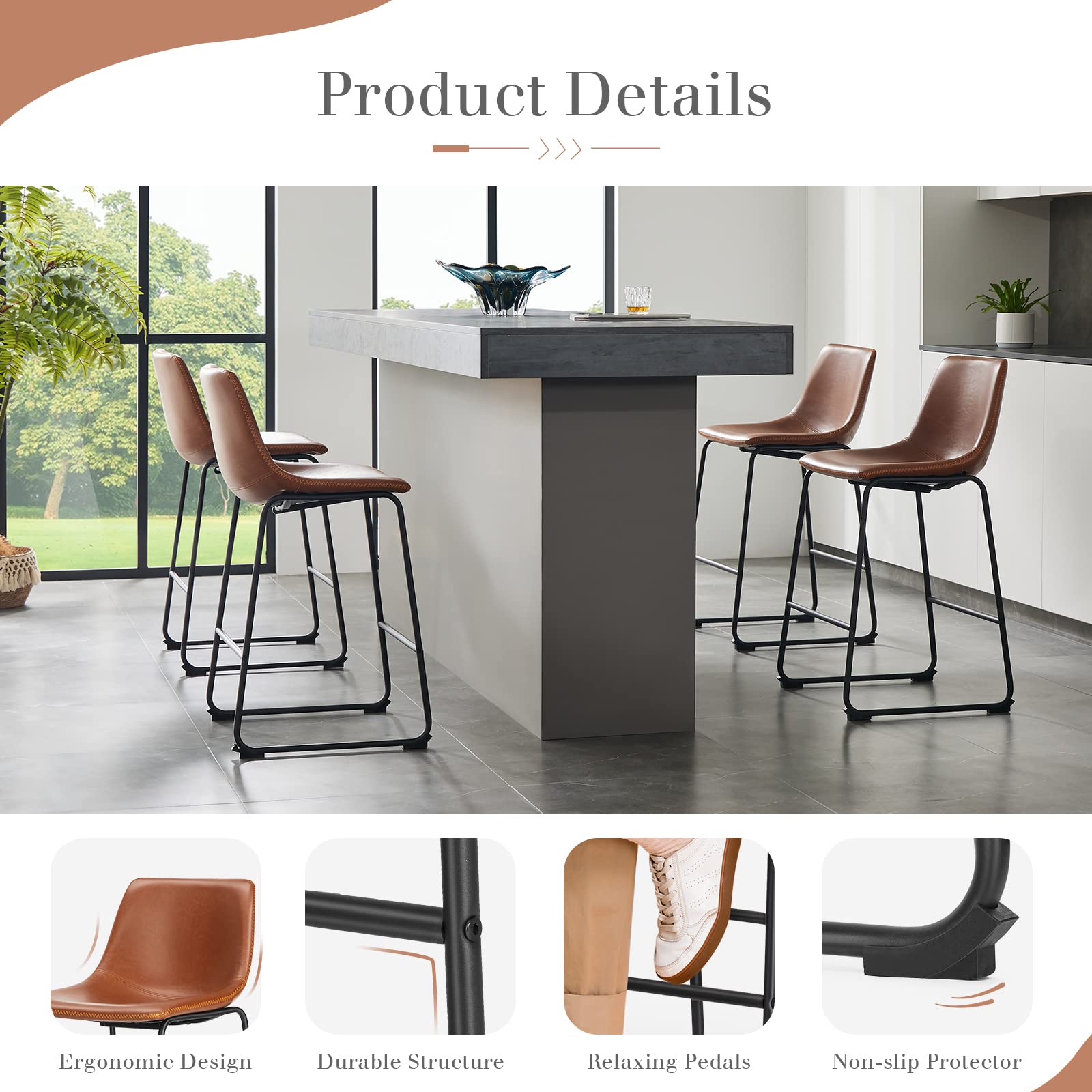 - 【Waterproof Leather】The dining chairs are upholstered in premium crazy-horse faux PU leather in a charming farmhouse and rustic tone. The waterproof leather of these modern counter stools is easy to clean. Just a damp towel wipe will keep these counter stools durable and looking like new again.