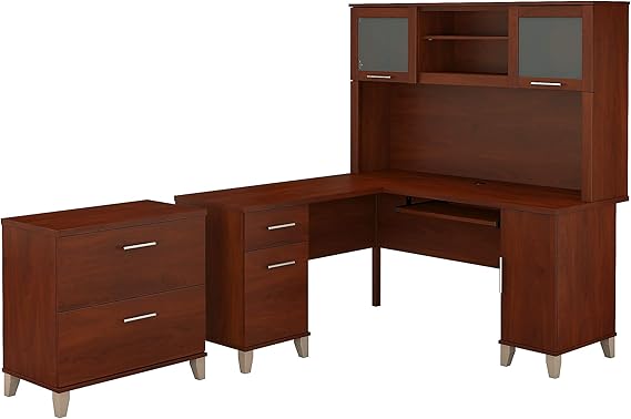 Somerset 60W L Shaped Desk with Hutch and Lateral File Cabinet