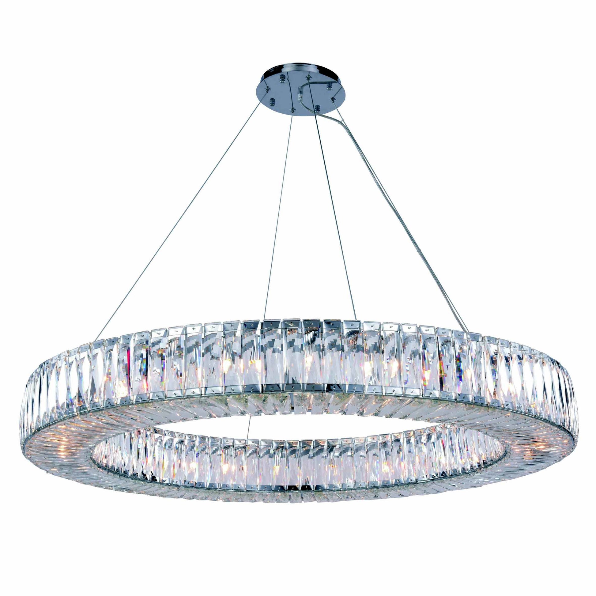 - Diameter of 43 inches; minimum hanging height of 11 inches, maximum hanging height of 65 inches