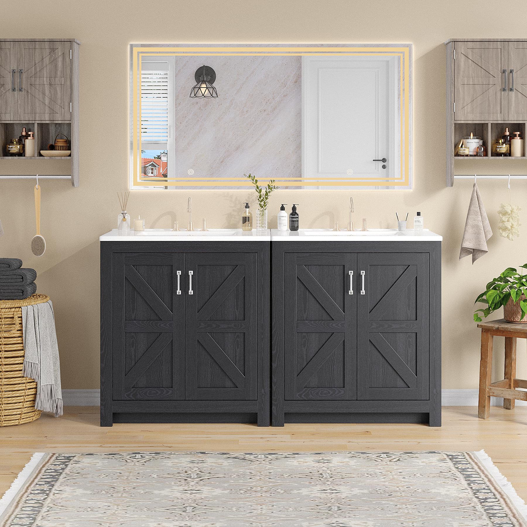 - Large Storage Space: Farmhouse bathroom vanity, designed for the ultimate organization in your bathroom. Our bathroom cabinet offers convenient storage to securely hold bath essentials like cosmetics, shampoos, shower gels, and razors. Additionally, the adjustable shelf inside the cabinet provides three height options to accommodate items of various sizes, Keep everything neat and accessible