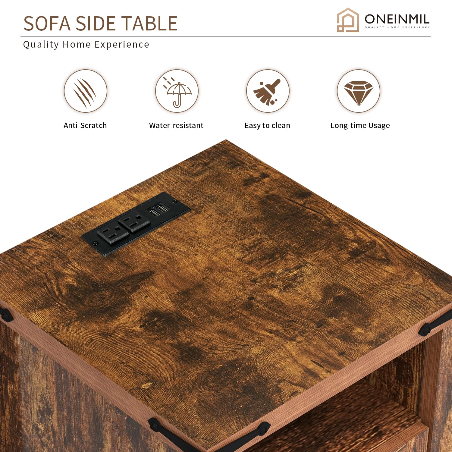 - Our sofa side table comes with USB and a socket, which can provide fast charging for laptops, iPads, smartphones, Bluetooth headphones, desk lamps, and other charging devices. Providing great convenience for you and your family.
