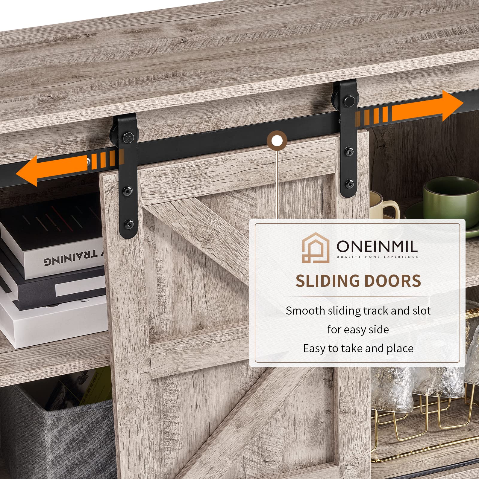 - STRONG & DURABLE STEEL SLIDING RAIL Two movable barn doors on the TV stand, easy access to cabinets and shelves via a metal sliding track, slide smoothly and quietly. The rail is covered by corrosion resistant paint to prevent rust, and to prolong the service life.