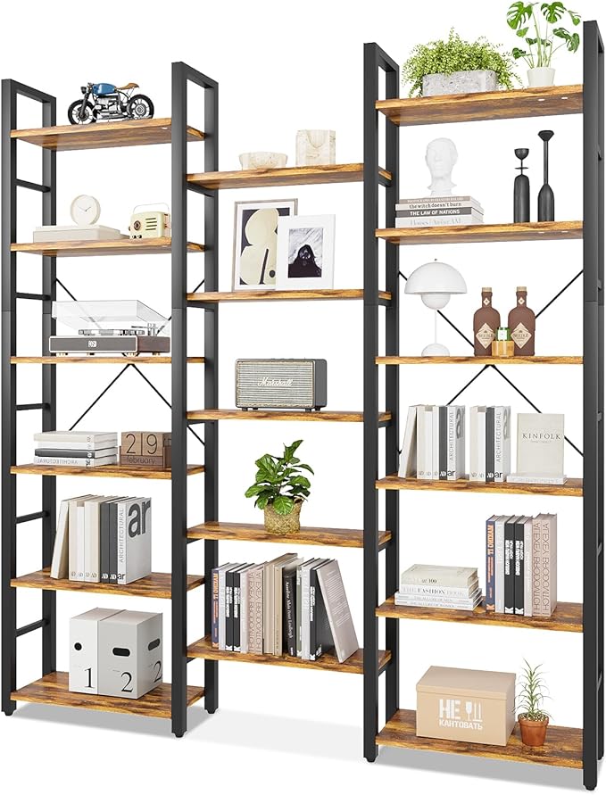 Wide 5 Tier Bookshelf, Shape Changeable Bookcases, Open Display Shelves, Modern Tall Bookcase Furniture for Bedroom, Living Room and Home Office, (5-Tier, Rustic Brown)
