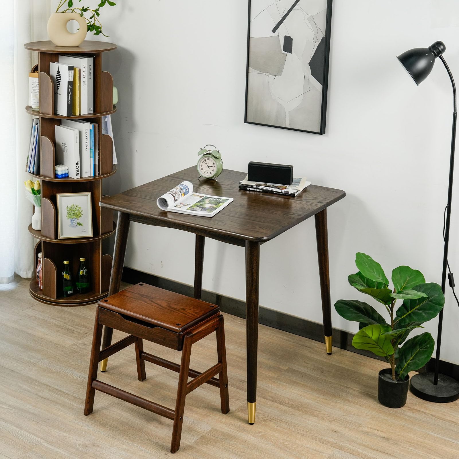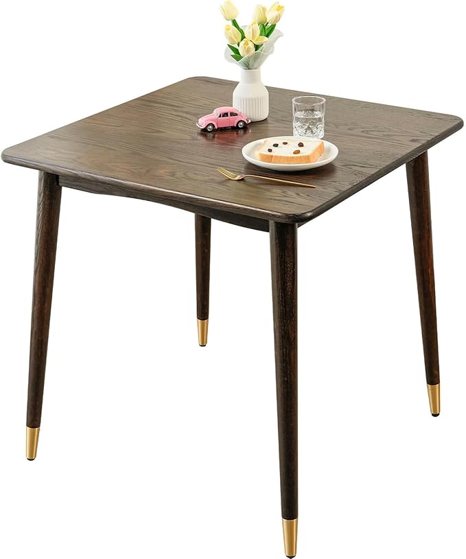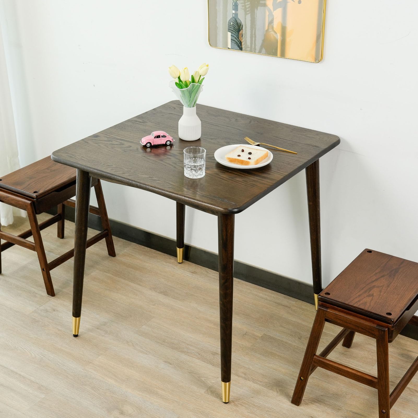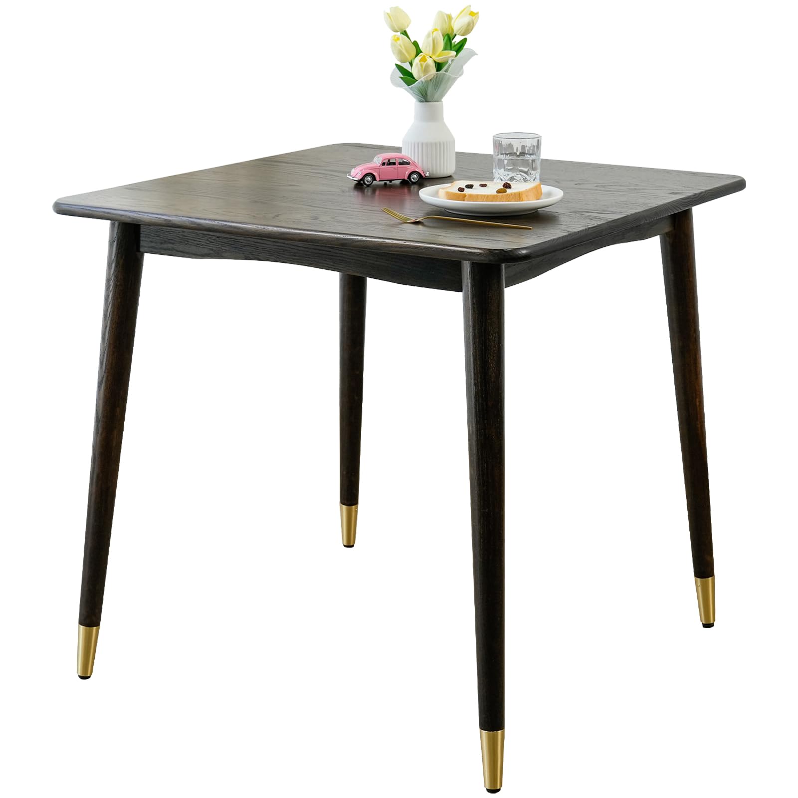 Dining Table 31.5“, Square Small Solid Wood Kitchen Table with Copper Decor for 2, Mid Century