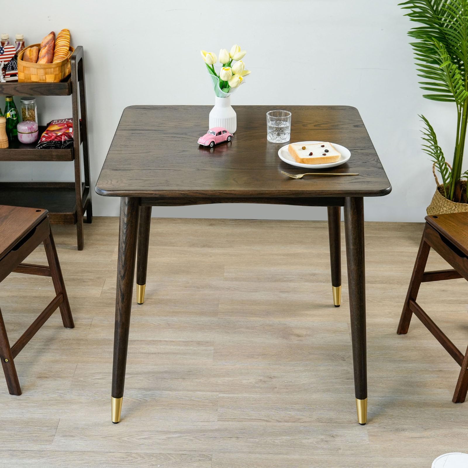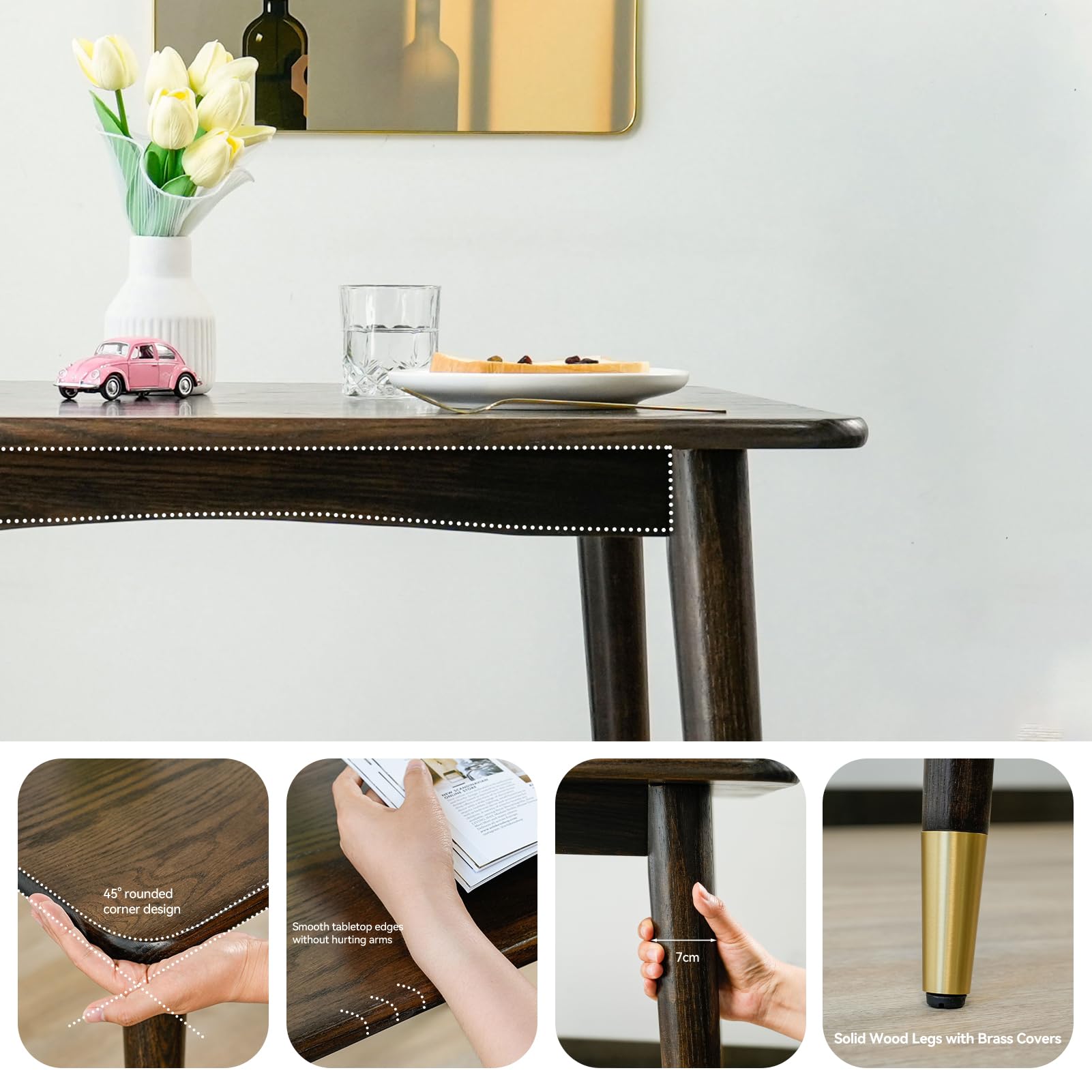 - SMOOTH AND STUDY TABLES: The stylish and modern dining room table has a smooth surface which makes it easy to clean and brings no pinch to your arms. The wood dining table can accommodate 2 - 4 people to eat or work. The table legs are made of high-quality solid wood with a high-quality brass cover, which has good stability and does not shake.