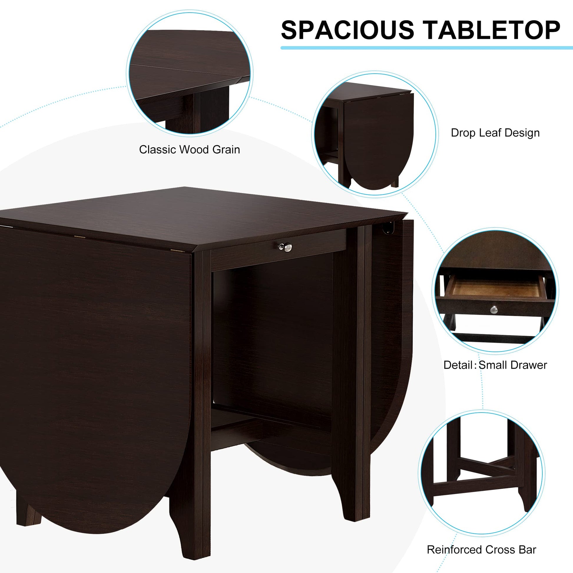 - Multifunctional Storage Cabinet The transformer table features with a small drawer for napkins, snacks, books, tableware or other odds and ends, cutting the clutter in your kitchen or living room. With this storage drawer design, the small kitchen table will be easy to customize the storage space which will keep your dining room tidy and organized. Just perfect kitchen tables for small spaces.