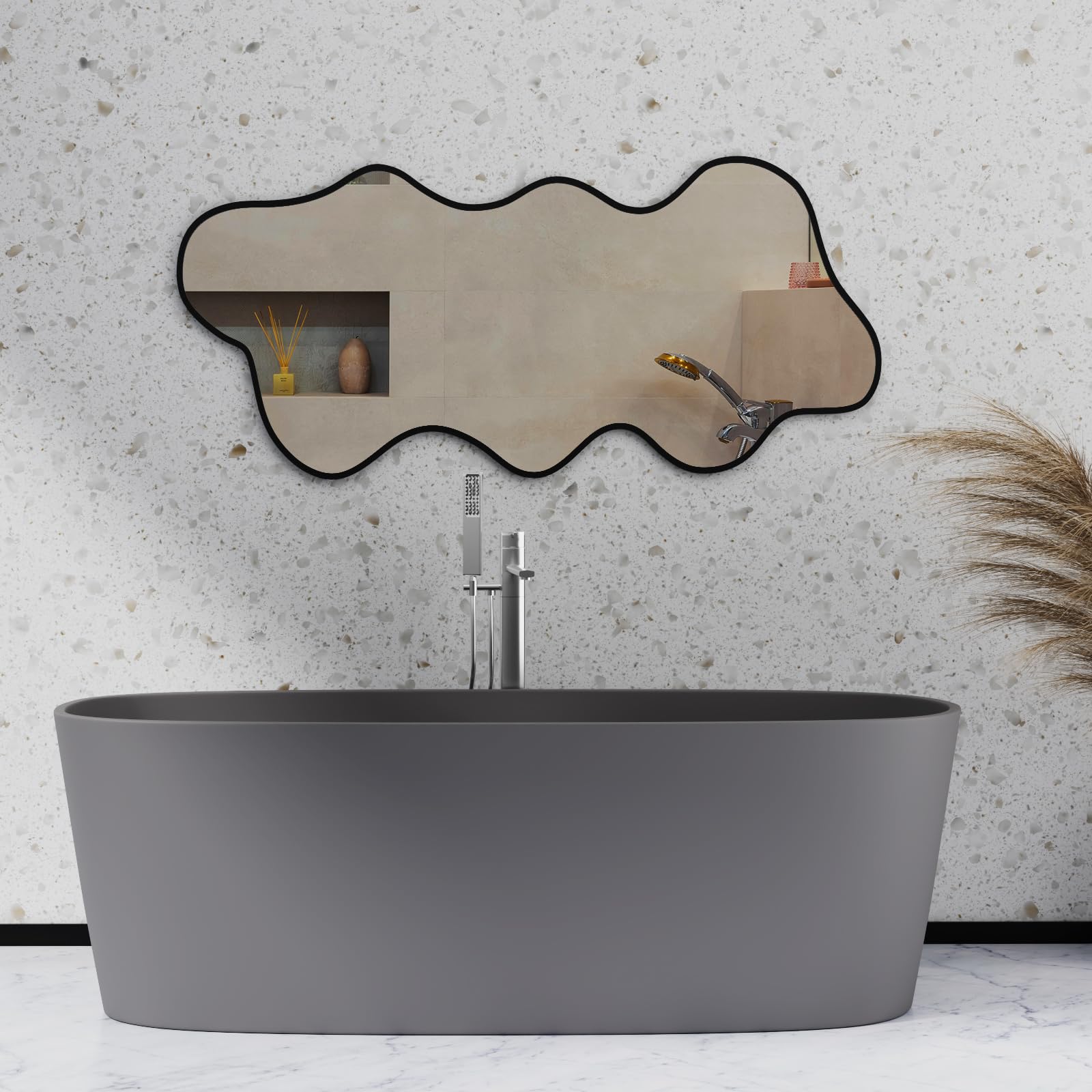 - Upgrade Black Aluminum Frame: This irregular wavy mirror are surrounded with sturdy and durable space aluminum frame, which is lighter and sturdier to protect the mirror better. The framed Asymmetrical mirror creates sophisticated atmospheres and add authentic touch of luxury.