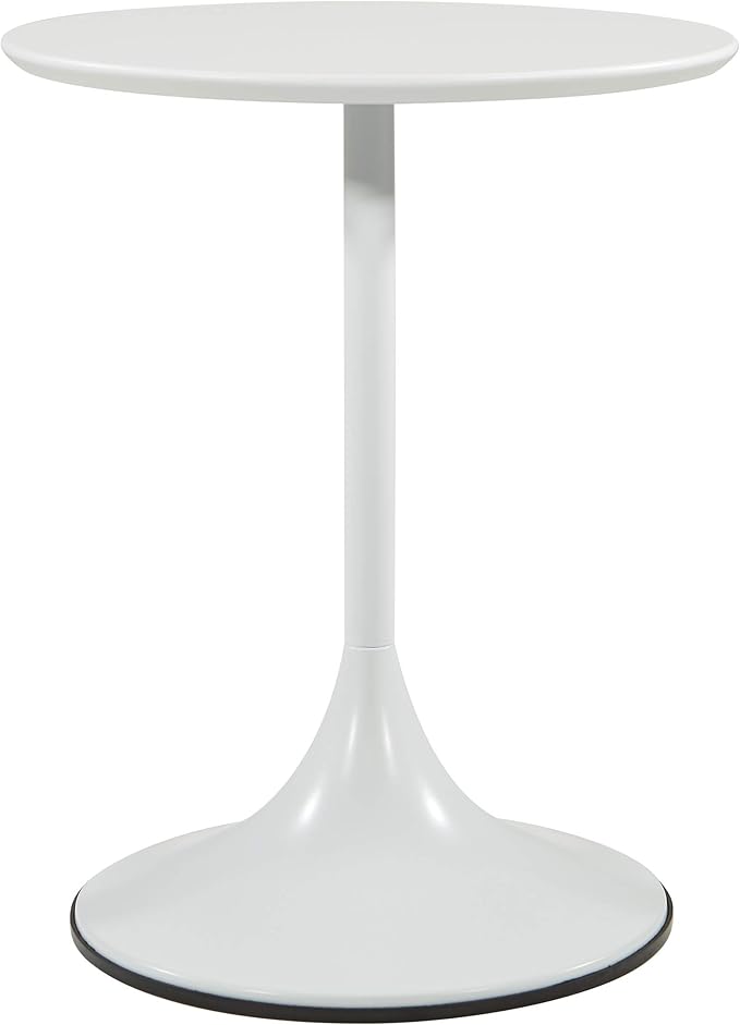 Flower Mid-Century Modern Side Table, White Top with White Base
