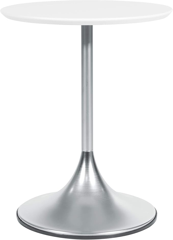 - Designed with everyday use in mind, the 17.75-inch wide durable white laminate table surface cleans up with just a wipe and is chip-resistant.
