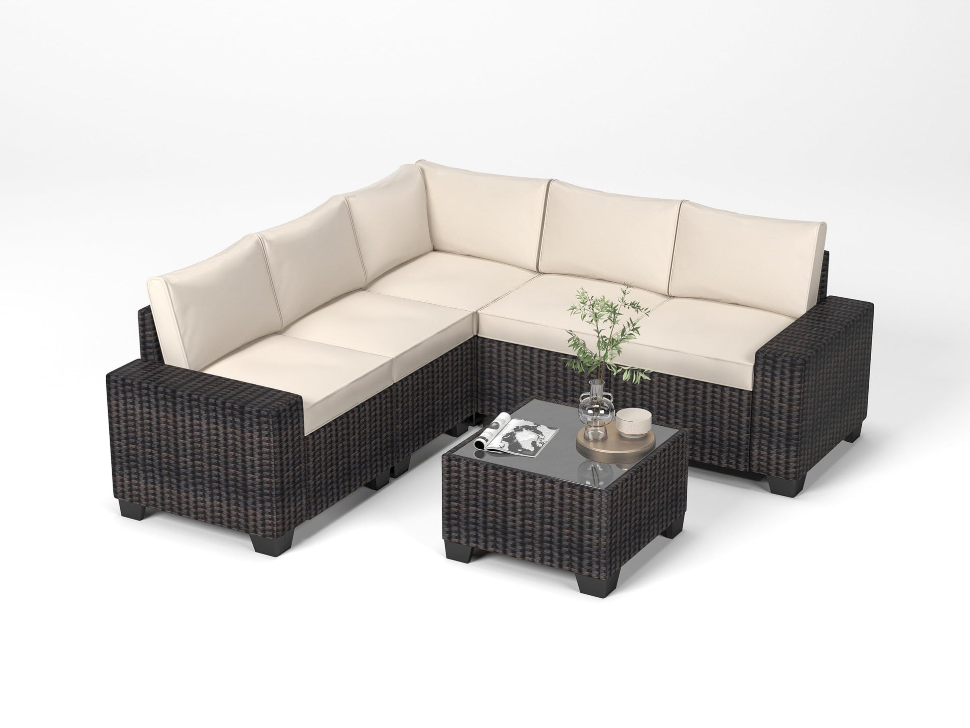 - Packaging Contents - Doppeltcharms 6-piece rattan wicker conversation couch set consists of 1 coffee table and 5 patio sofas. Please note that this furniture set will arrive in 2 packages, which may not arrive simultaneously. We kindly ask for your patience during shipping.