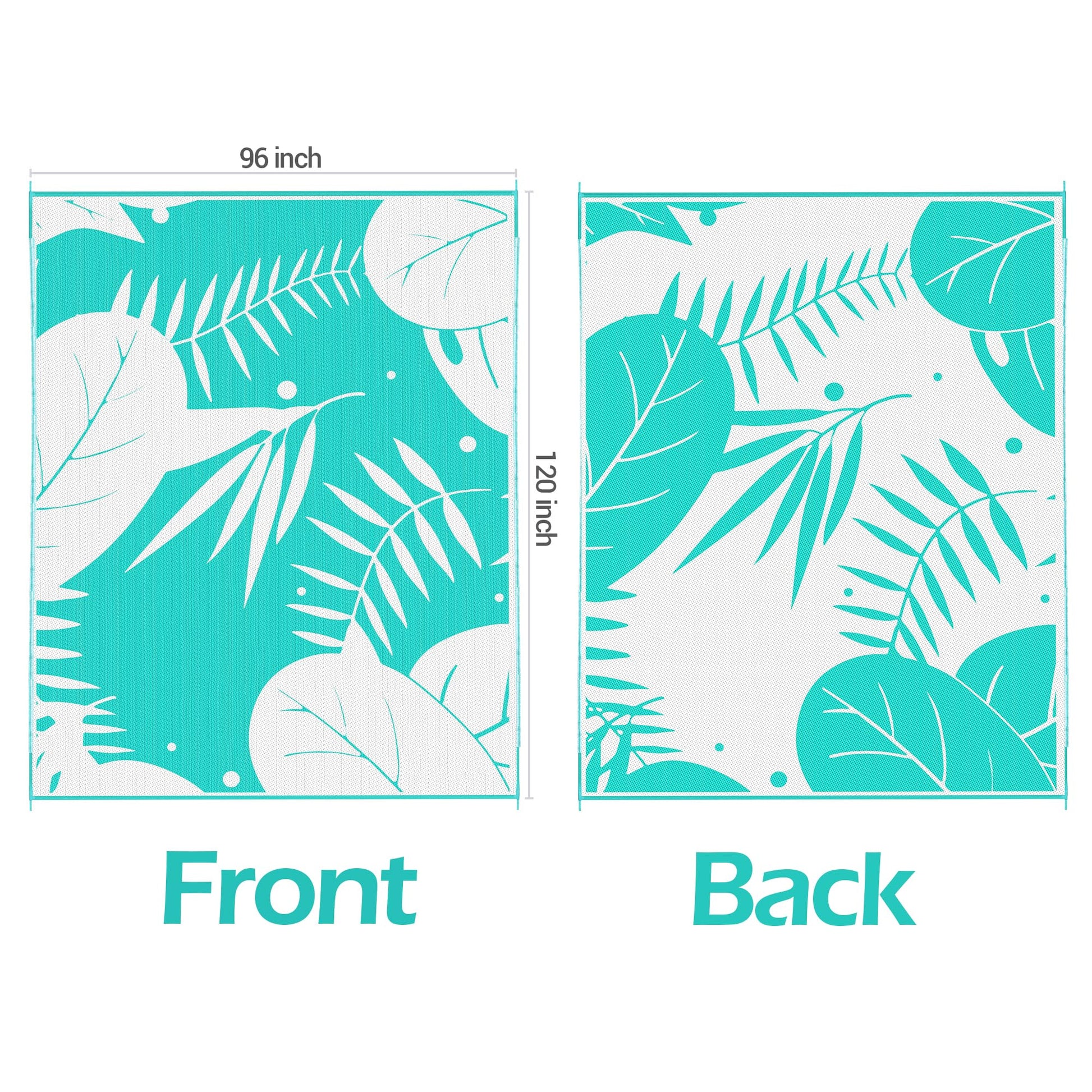 Outdoor Rug with Green Palm Leaf 8x10ft, Outdoor Plastic Straw Rug, Waterproof, Easy