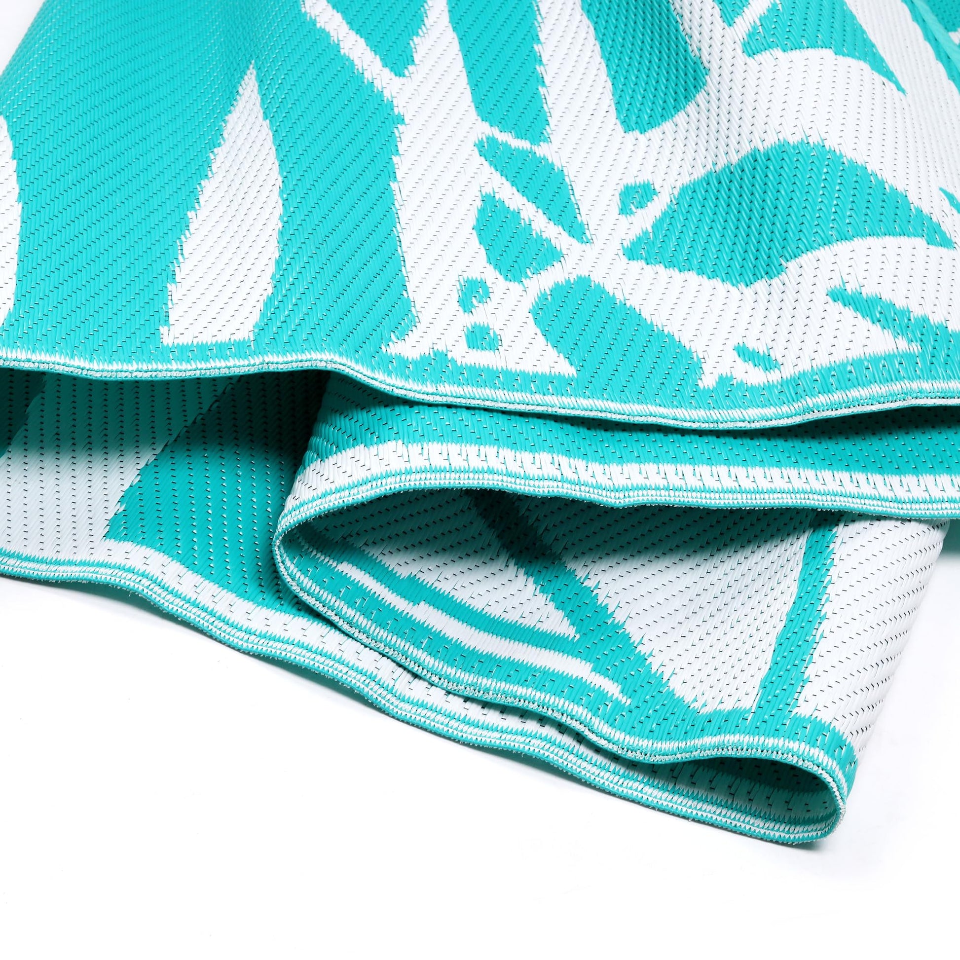 - The green palm leaf pattern is perfect for every outdoor camping trip in the summer, just lay it flat on the ground. Outdoor plastic straw rug creates a relaxed and enjoyable outdoor living for you.