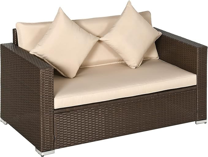 - Wicker Loveseat: Our outdoor loveseat sofa is made of PE rattan, a material with all the handwoven style of classic wicker, with better resistance to UV and water. Reinforcing its structure is a strong steel frame, helping to add extra weight capacity, and adding to the strength of the loveseat overall.