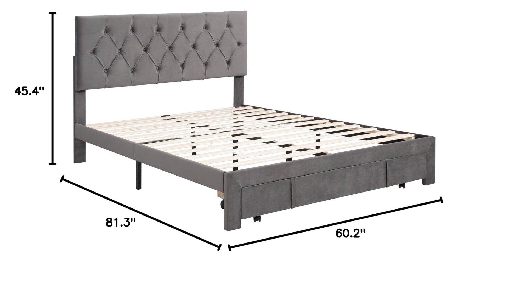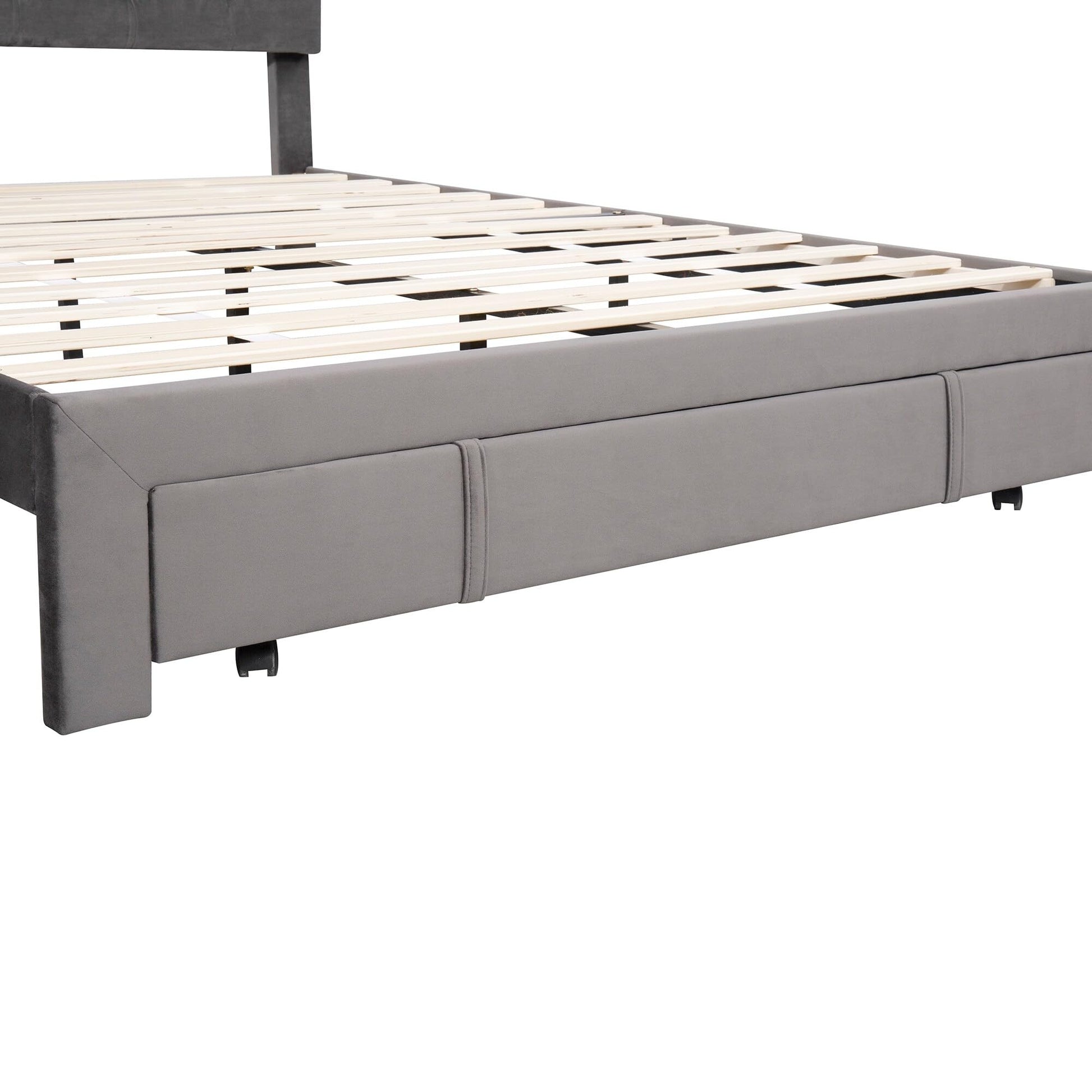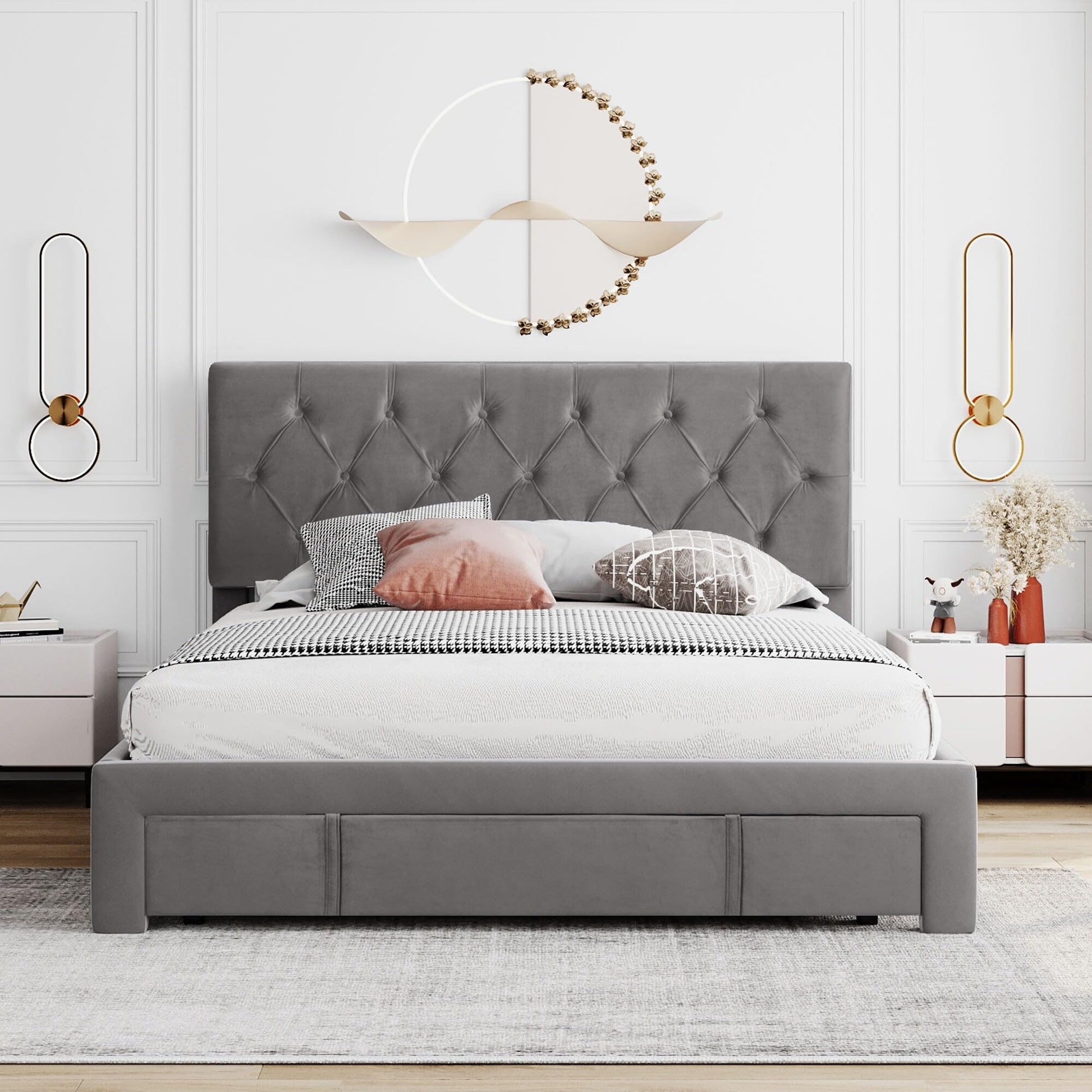 Queen Size Storage Bed Velvet Upholstered Platform Bed